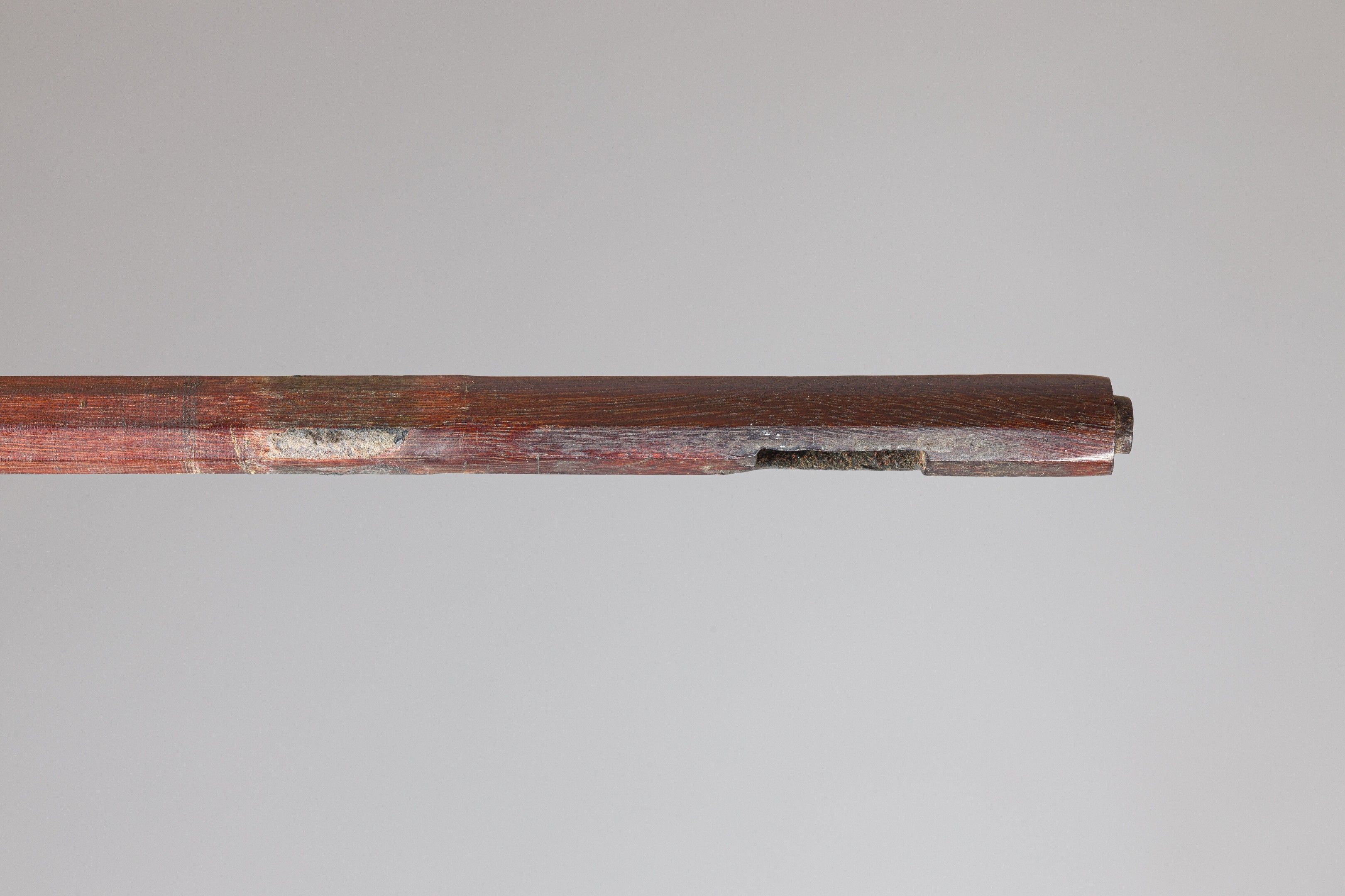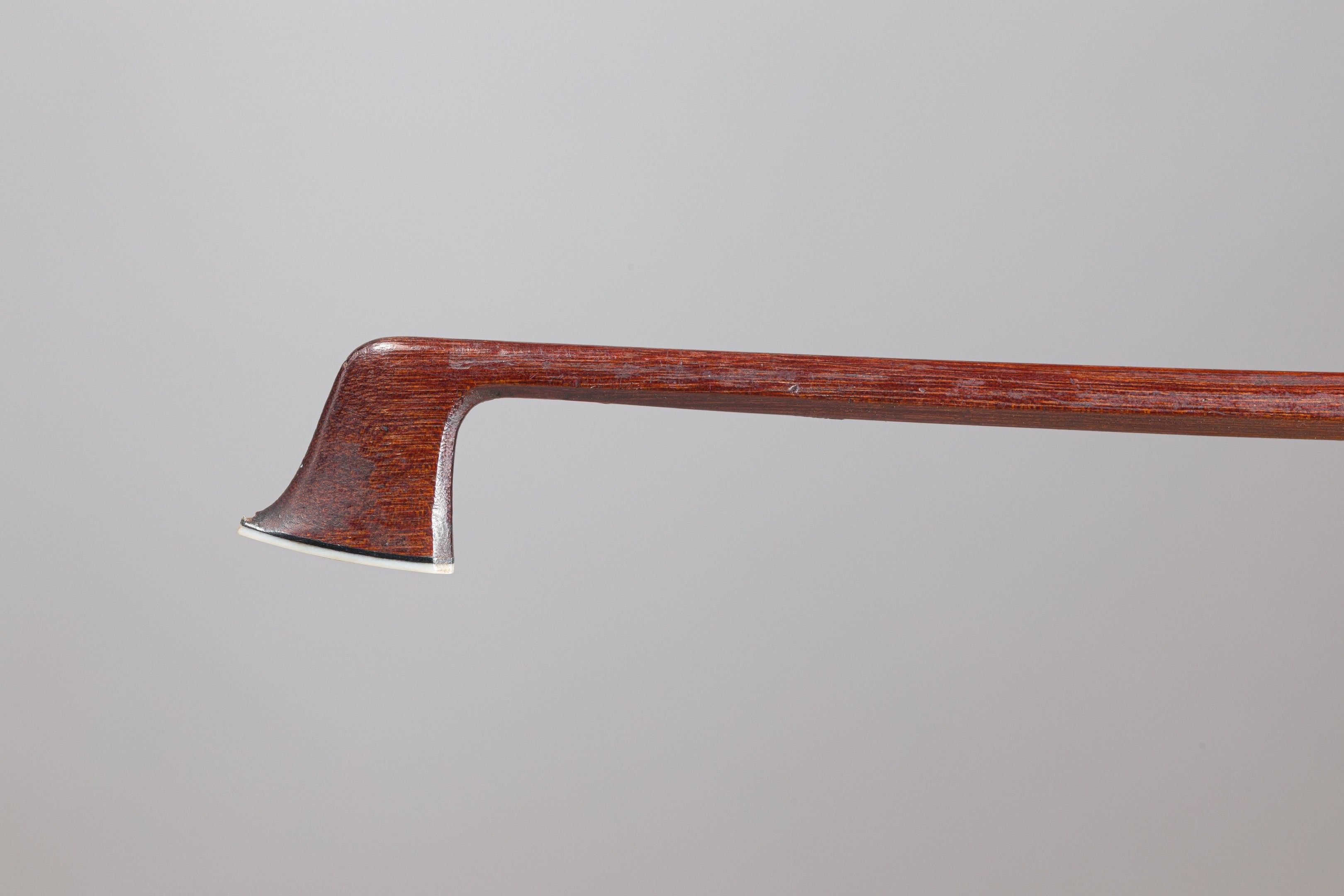 Baguette de violon de l'école de EURY-PERSOIT. 33g9, 717mm. Petite fente dessus tête, coup de scie dessous collet, légère gerce côté tête et sous collet, légers éclats mortaise arrière baguette et usure pouce. (EAID-BZV-3402)