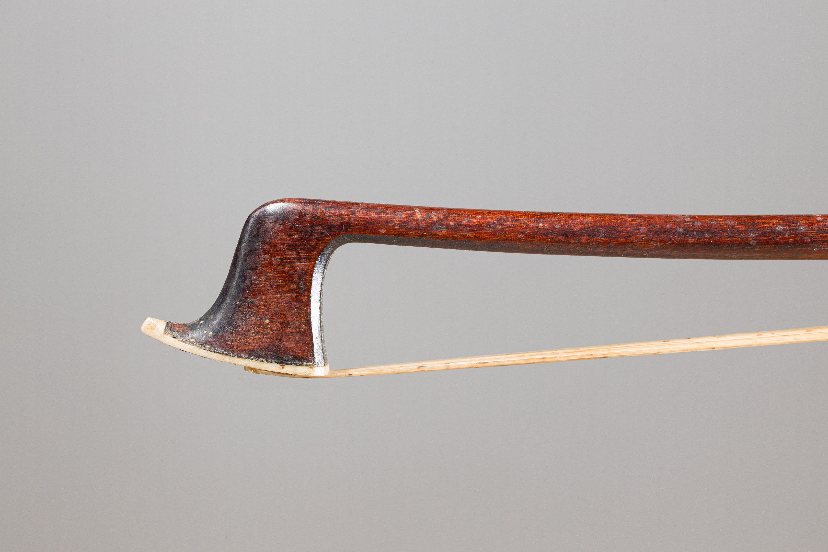 Archet d'alto de Charles-Nicolas BAZIN, fait vers 1895, signé "Barbet & Cranier Marseille", monté argent. 57g, mèche très fine et garniture cuir. 714mm. Coups tête et baguette, petite usure arrière baguette. En bon état. (EBBE-CCA-5976)