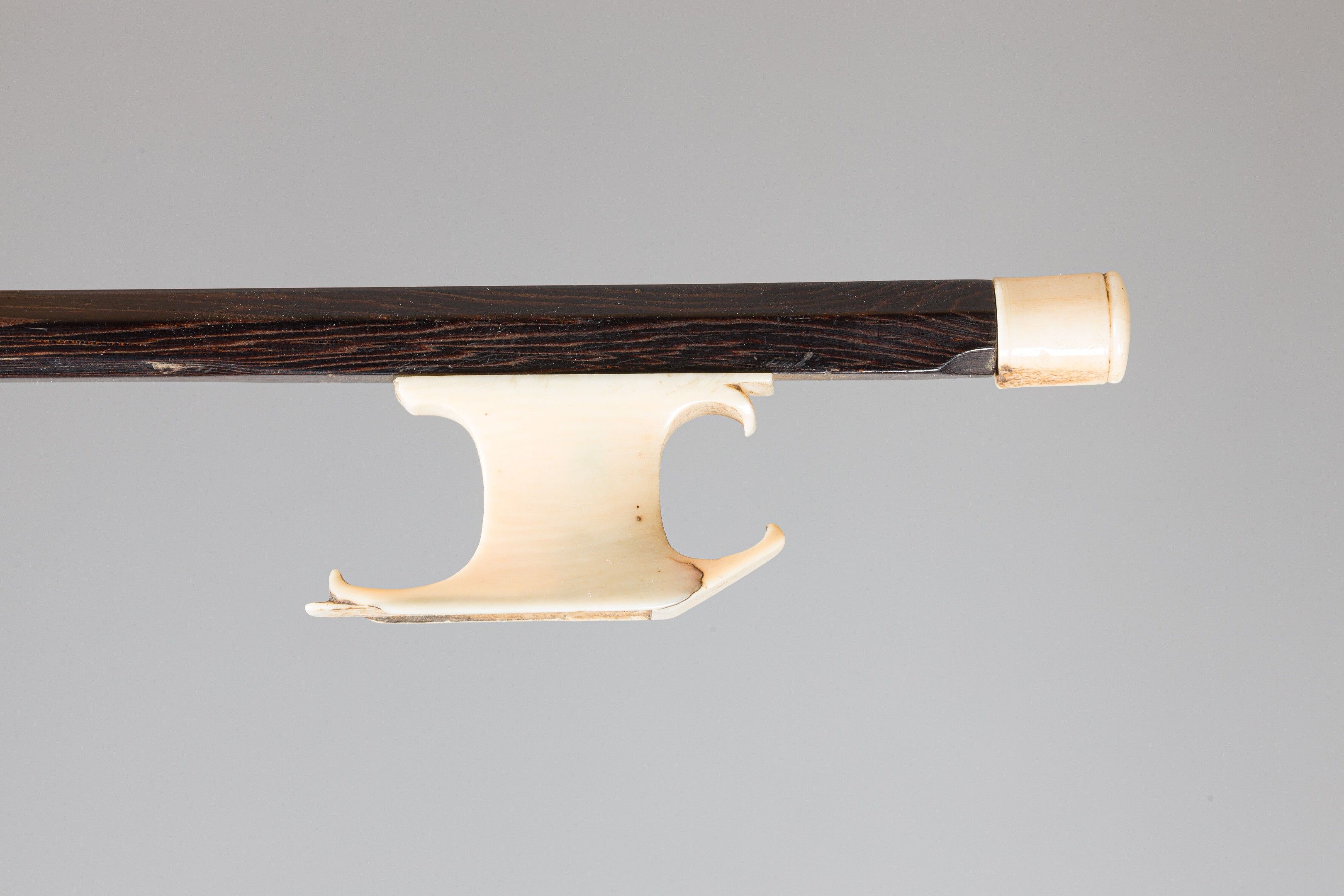 Baguette et bouton d'archet de violon de Nicolas DUCHAINE II, fait vers 1790/1800, bois de fer, hausse de même époque, en ivoire. 50g9, sans mèche ni garniture. Coup dessus tête, éclats et fente ivoire hausse, fente bouton. Bon état. (EAEC-CGM-4686)