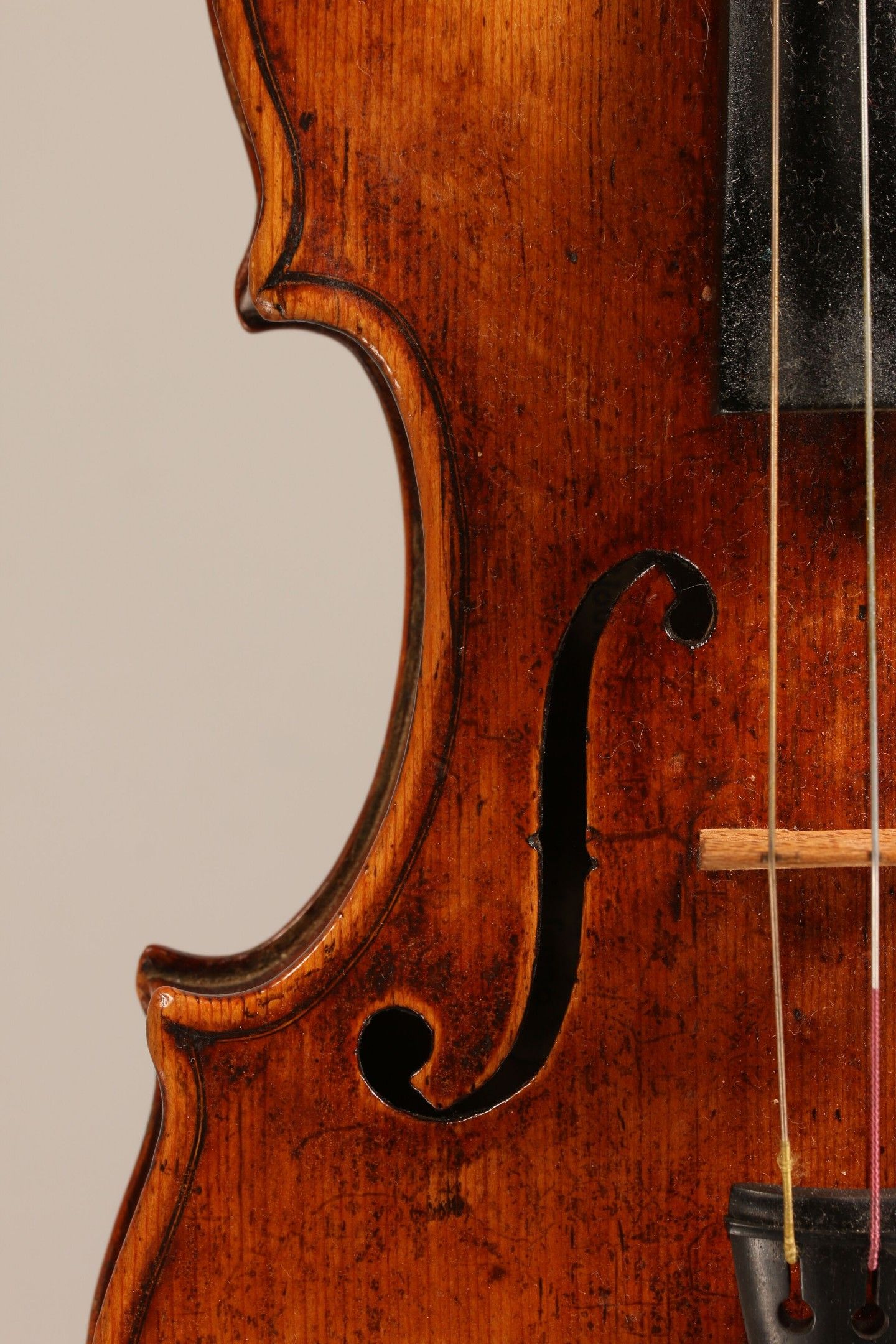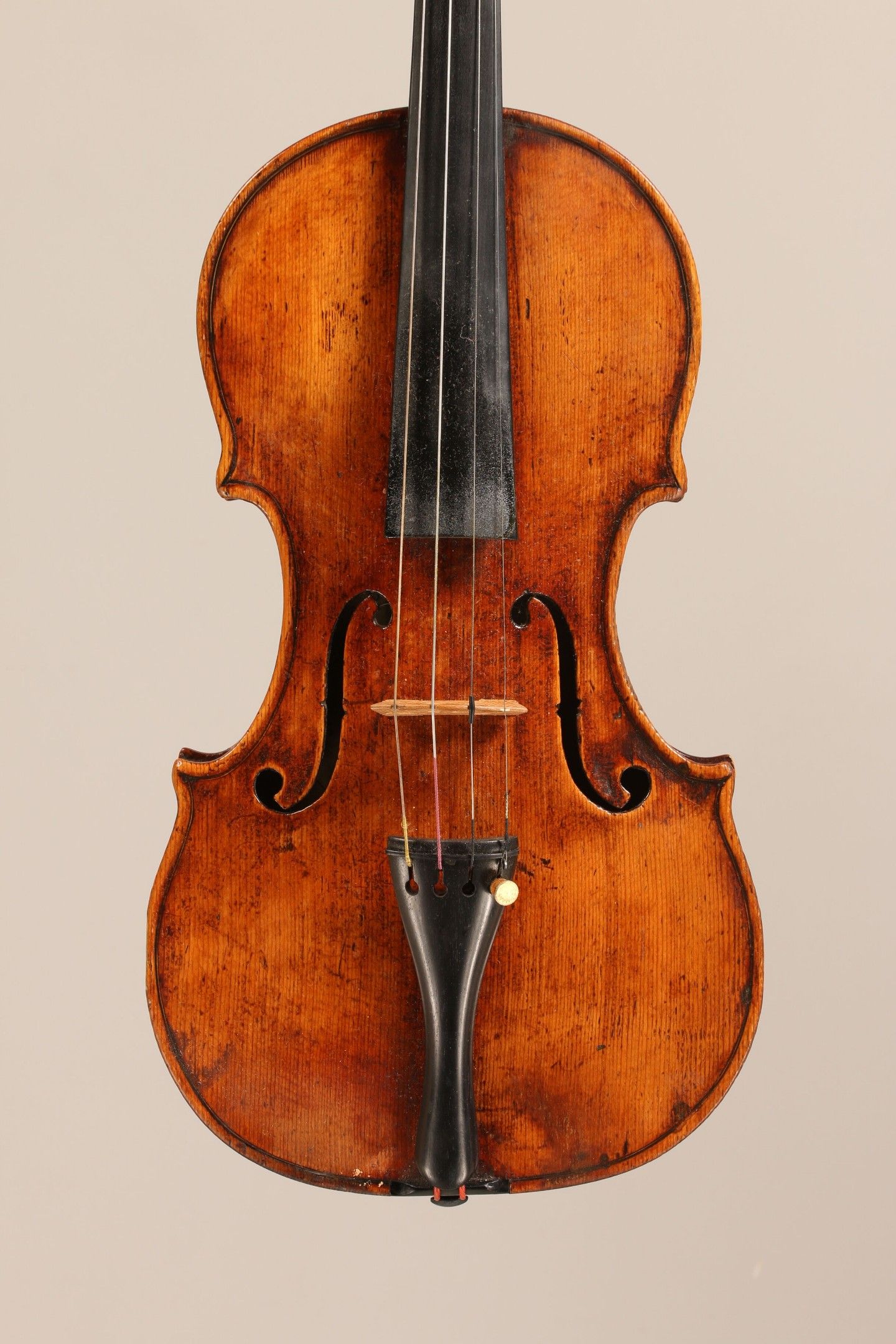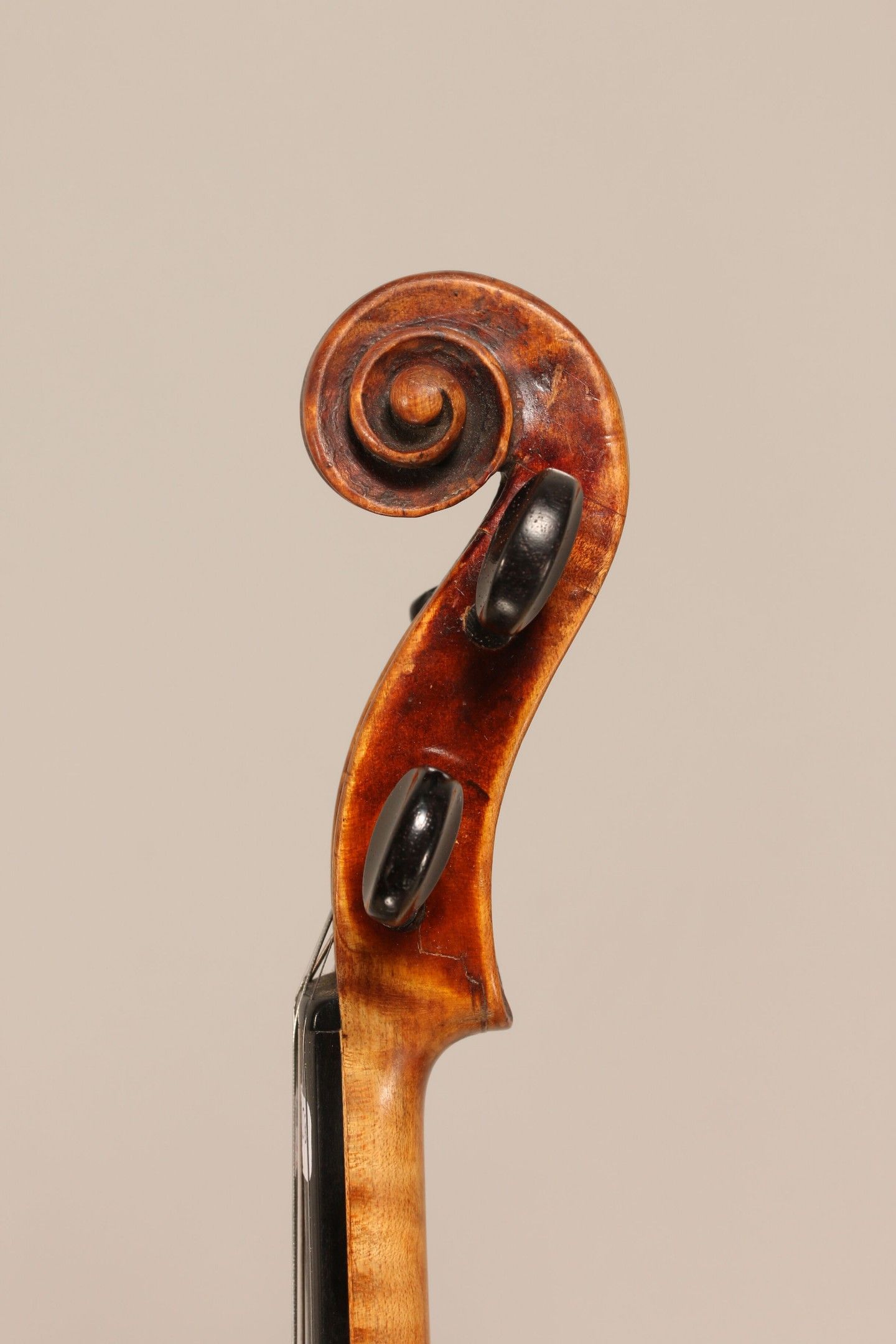 Intéressant violon 7/8 probablement fin XVIIIème ; portant étiquette apocryphe Grancino. Différentes cassures et restaurations, tête restaurée. 348mm [VREXP3]