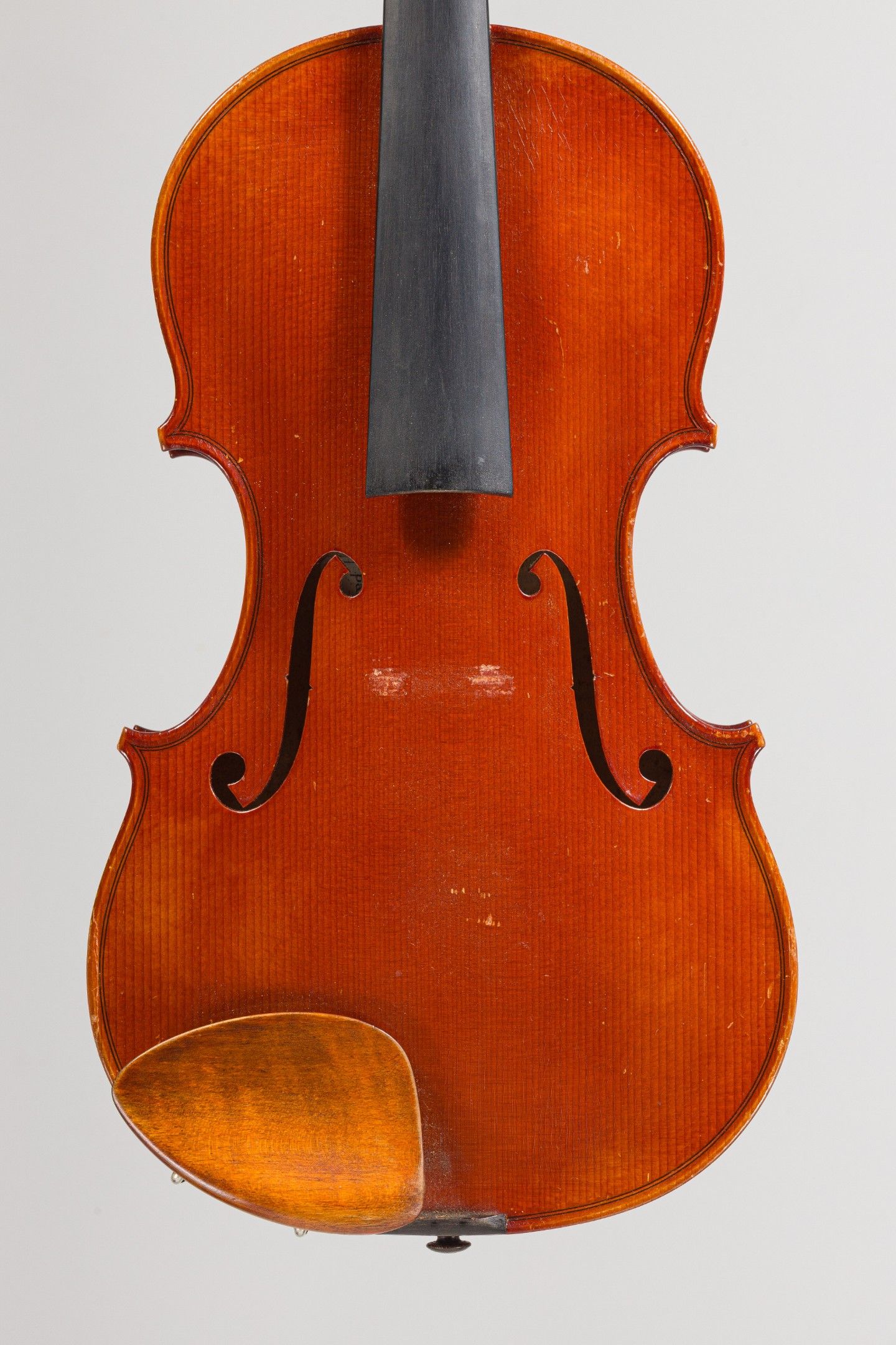 Violin by Amédée DIEUDONNE made in Mirecourt around 1935-1940, finished and sold by Billotet in Paris in 1940; bearing label 'Revu et mis au point par F. Billotet Année 1940' (Revised and adjusted by F. Billotet, Year 1940). Fair condition. 355 mm. [VREXP1]