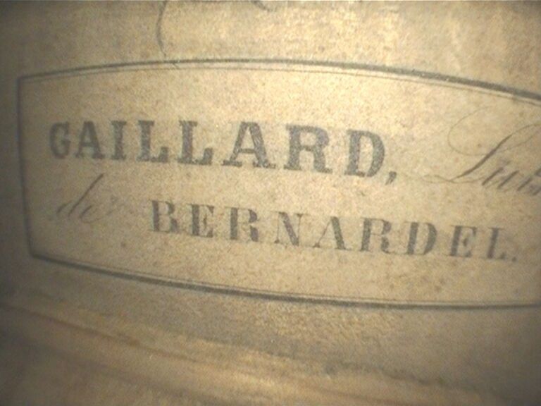 Violon de Jules GAILLARD, fait à Mirecourt en 1868 ; portant étiquette Gaillard, luthier élève de Bernardel de Paris 1868. État : quelques restaurations sur la table. 360mm. This instrument is more than 100 years old. [VREXP1]