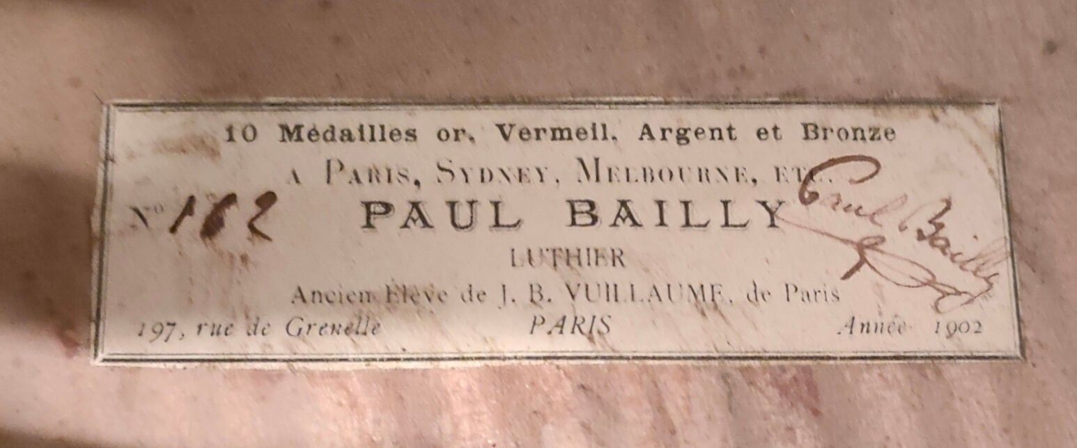 Violoncelle de Paul BAILLY, fait à Paris en 1902, numéroté 1…