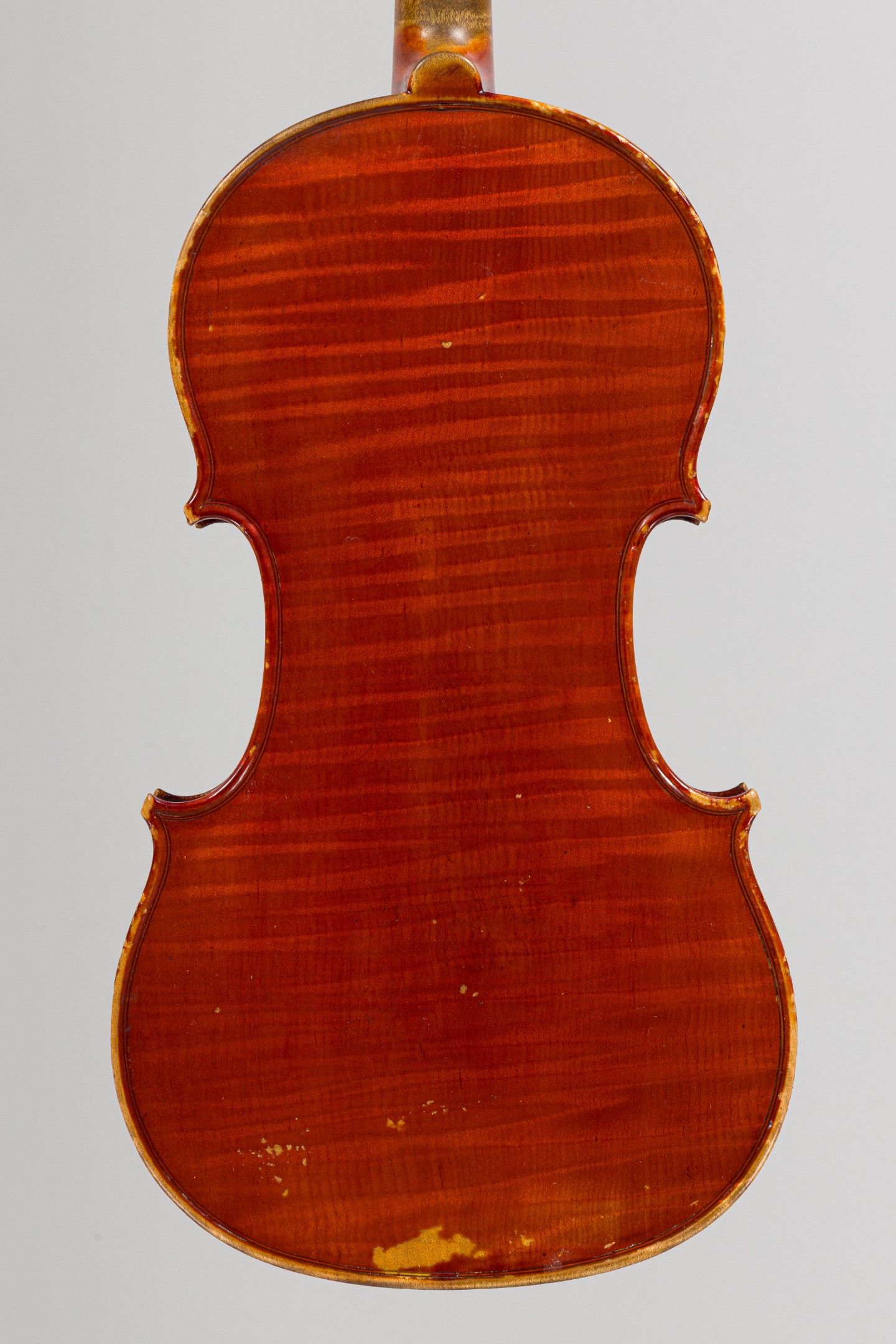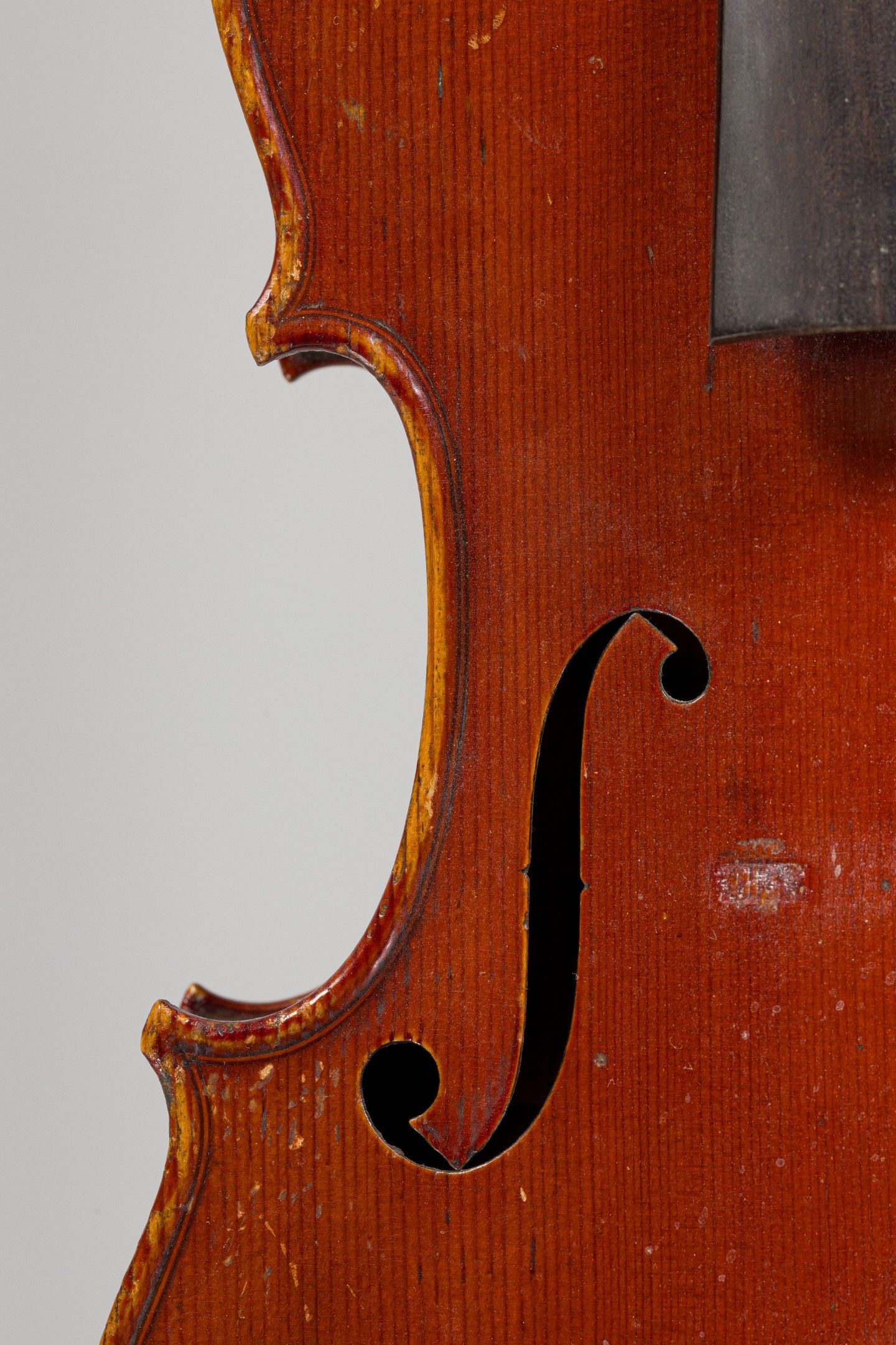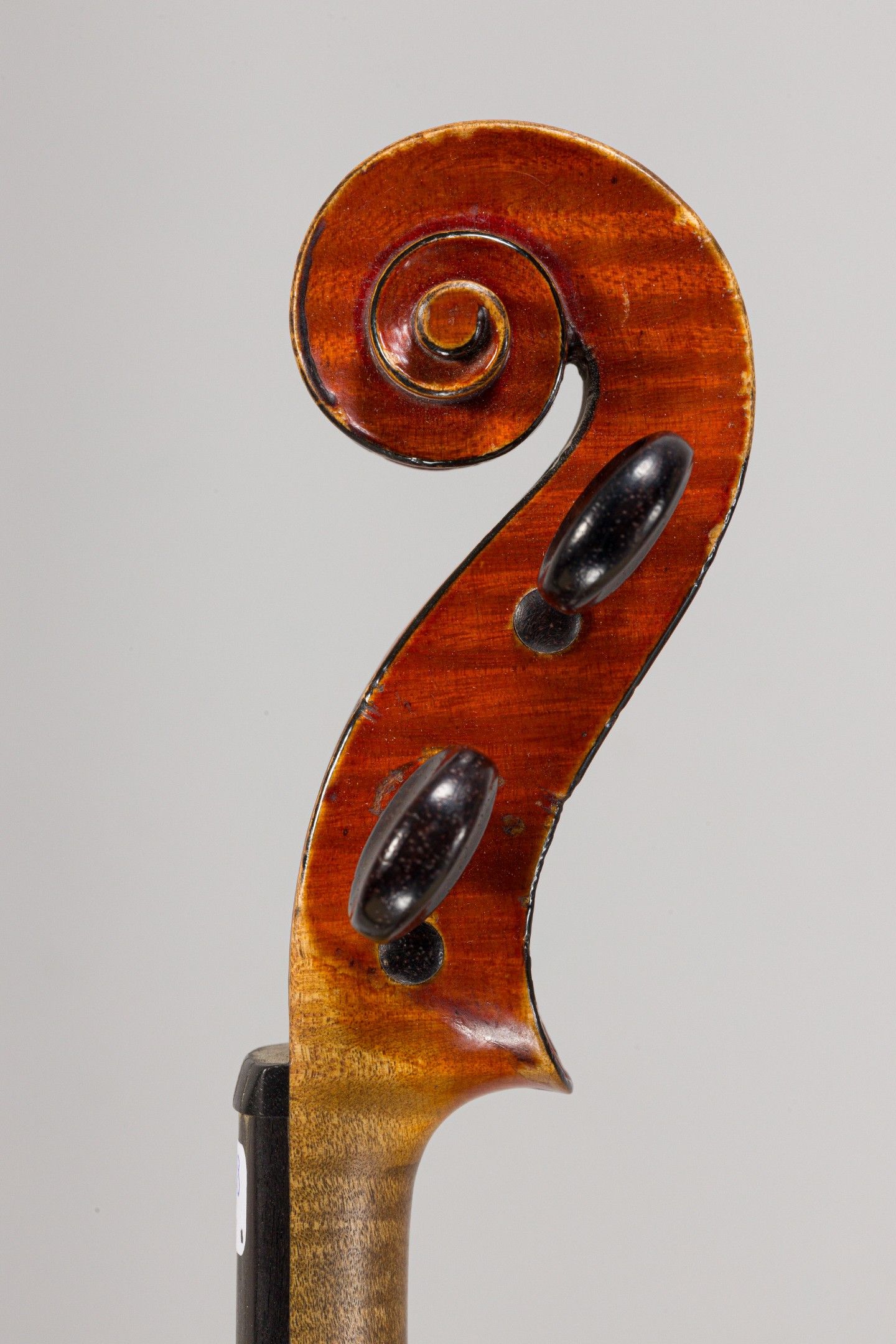 Violon de Nicolas COUTURIEUX, fait à Lyon en 1835 ; portant étiquette Luthier rue écorche Boeuf à Lyon 1835, et marque au fer de N. Couturieux à Lyon 1835. État : petites cassures restaurées sur la table, petites fractures sur l'éclisse arrière décollée. 358mm. This instrument is more than 100 years old. [VREXP1]