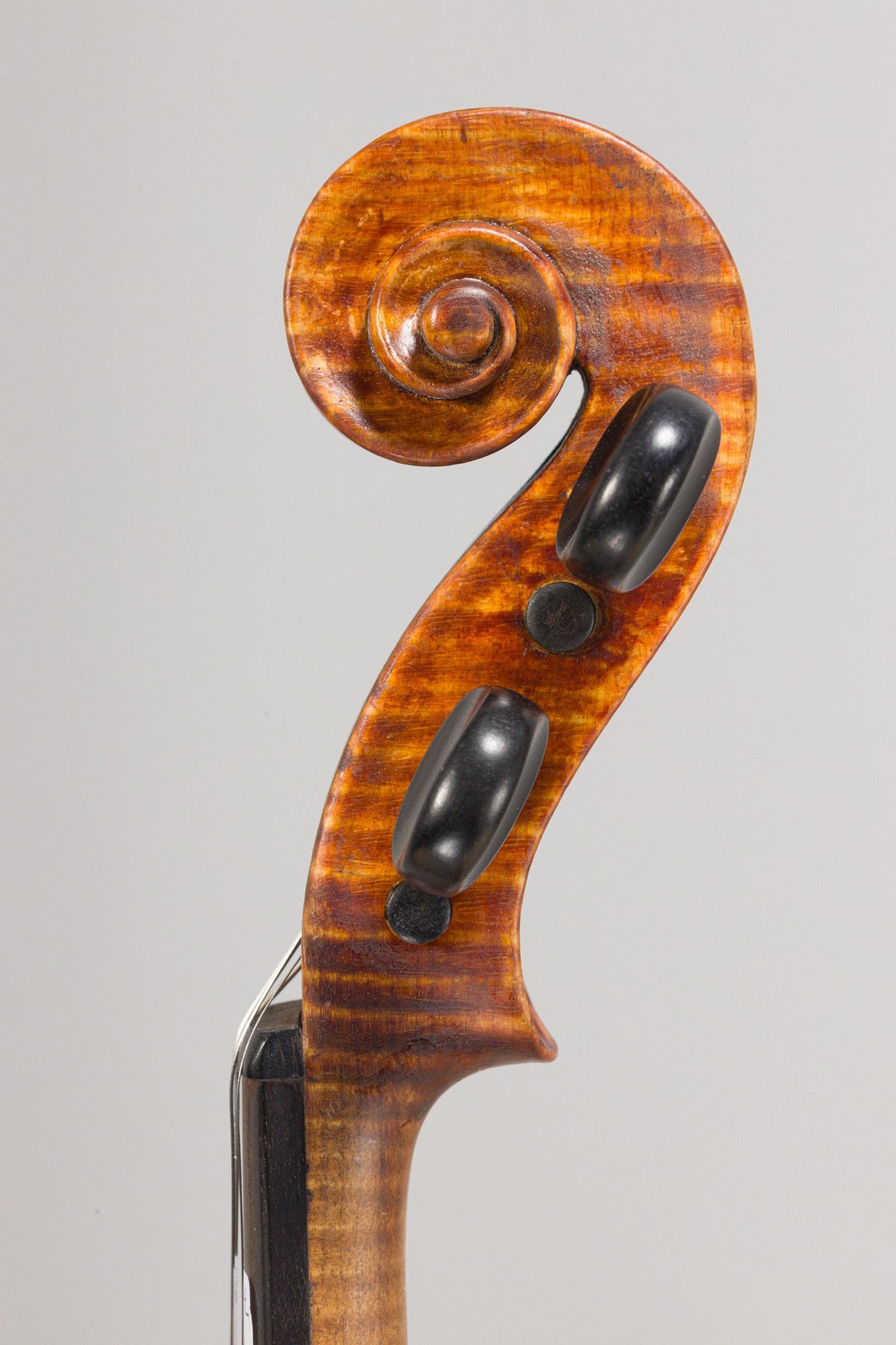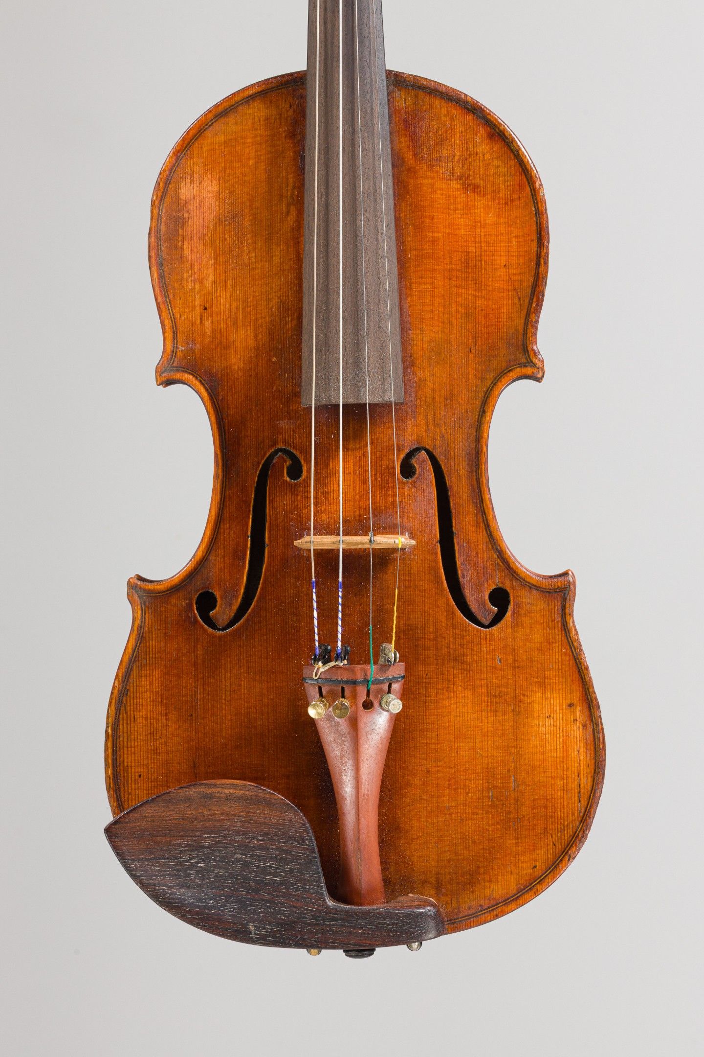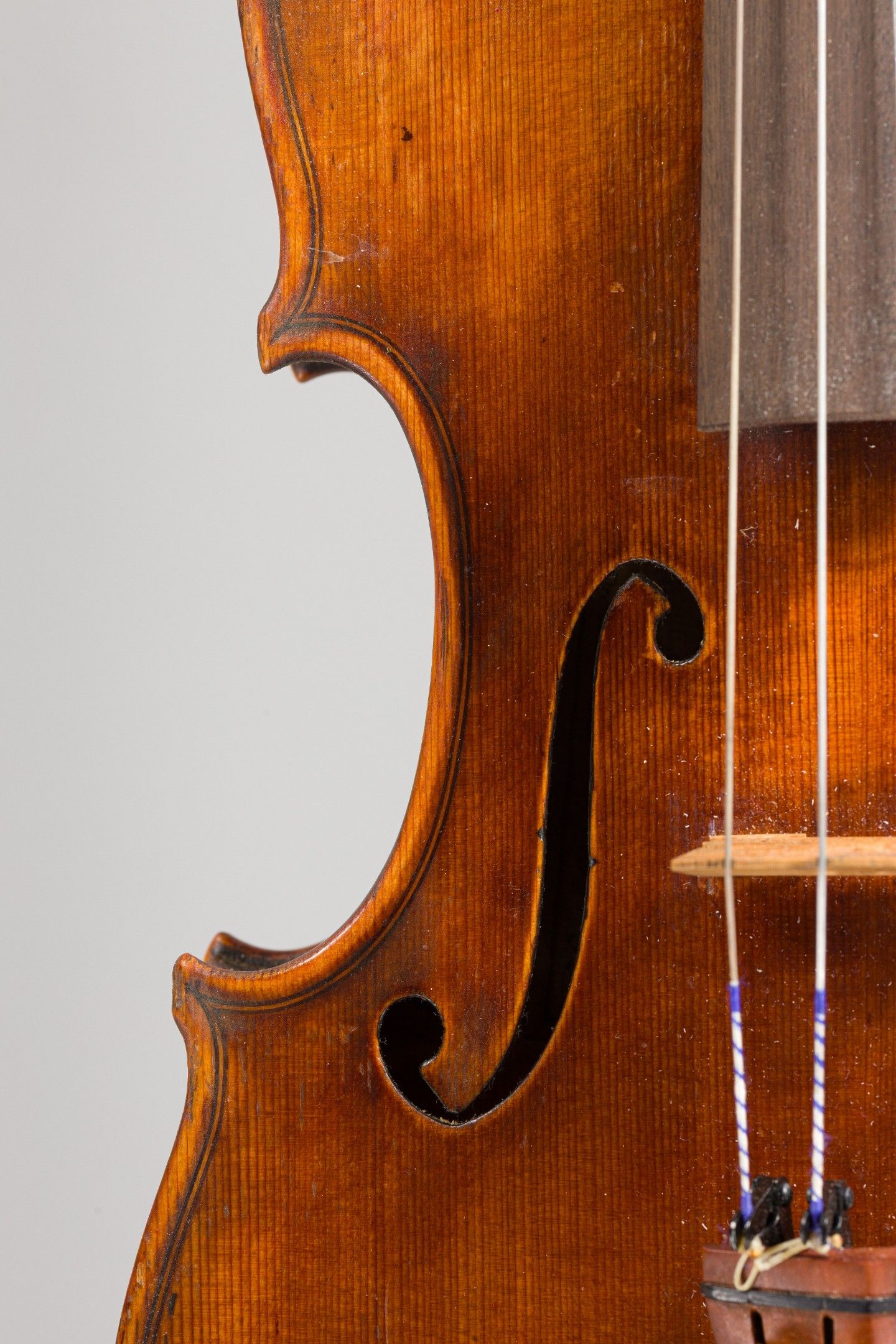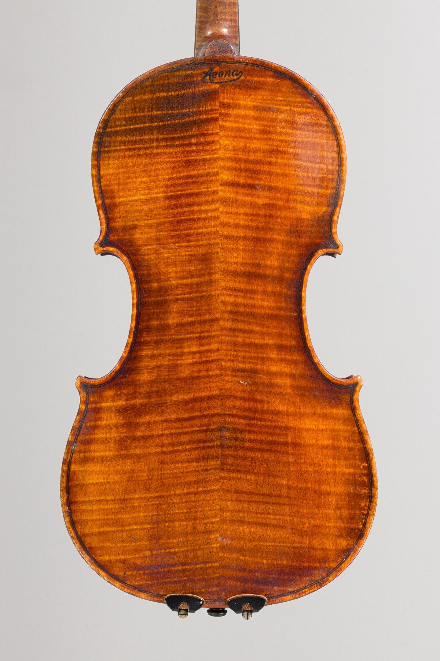 Violon fait vers 1920, en modèle Guarnerius del Gesu et vendu à Dresde en 1923 par le Professeur Franz Joseph Koch ; portant étiquette de Aeona et marque au fer sous le talon. Quelques restaurations sur la table. 360mm. This instrument is more than 100 years old. [VREXP3]