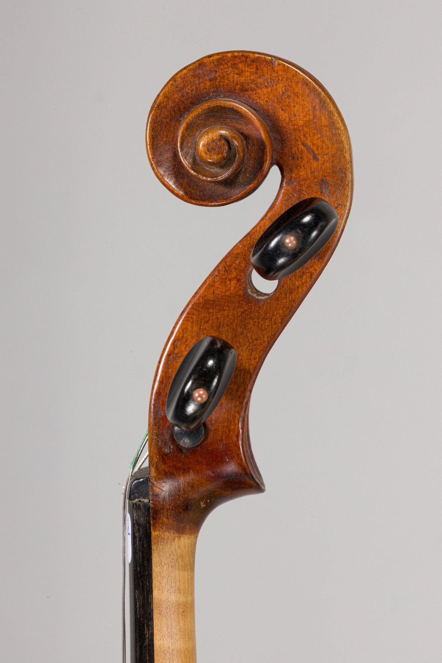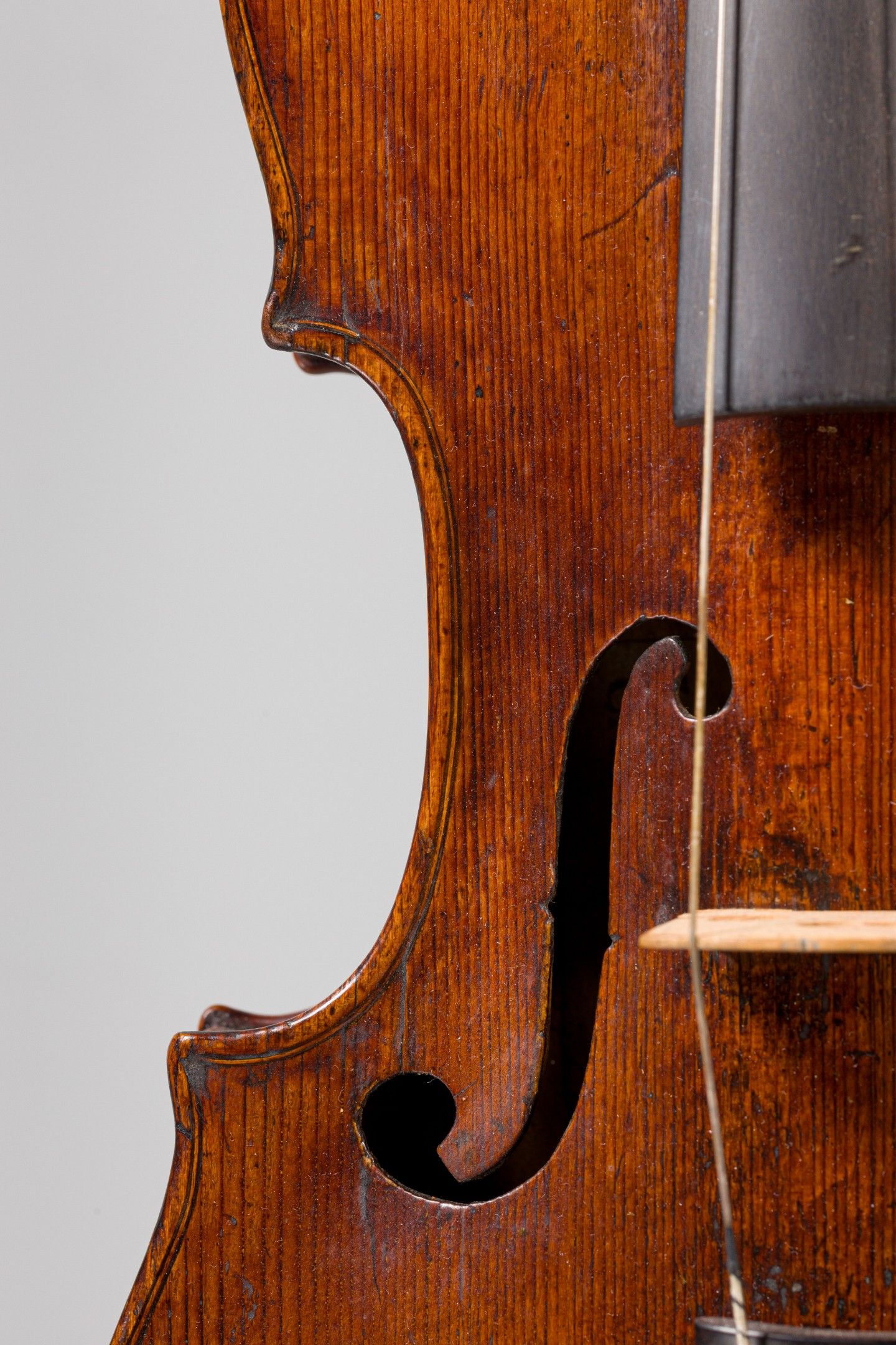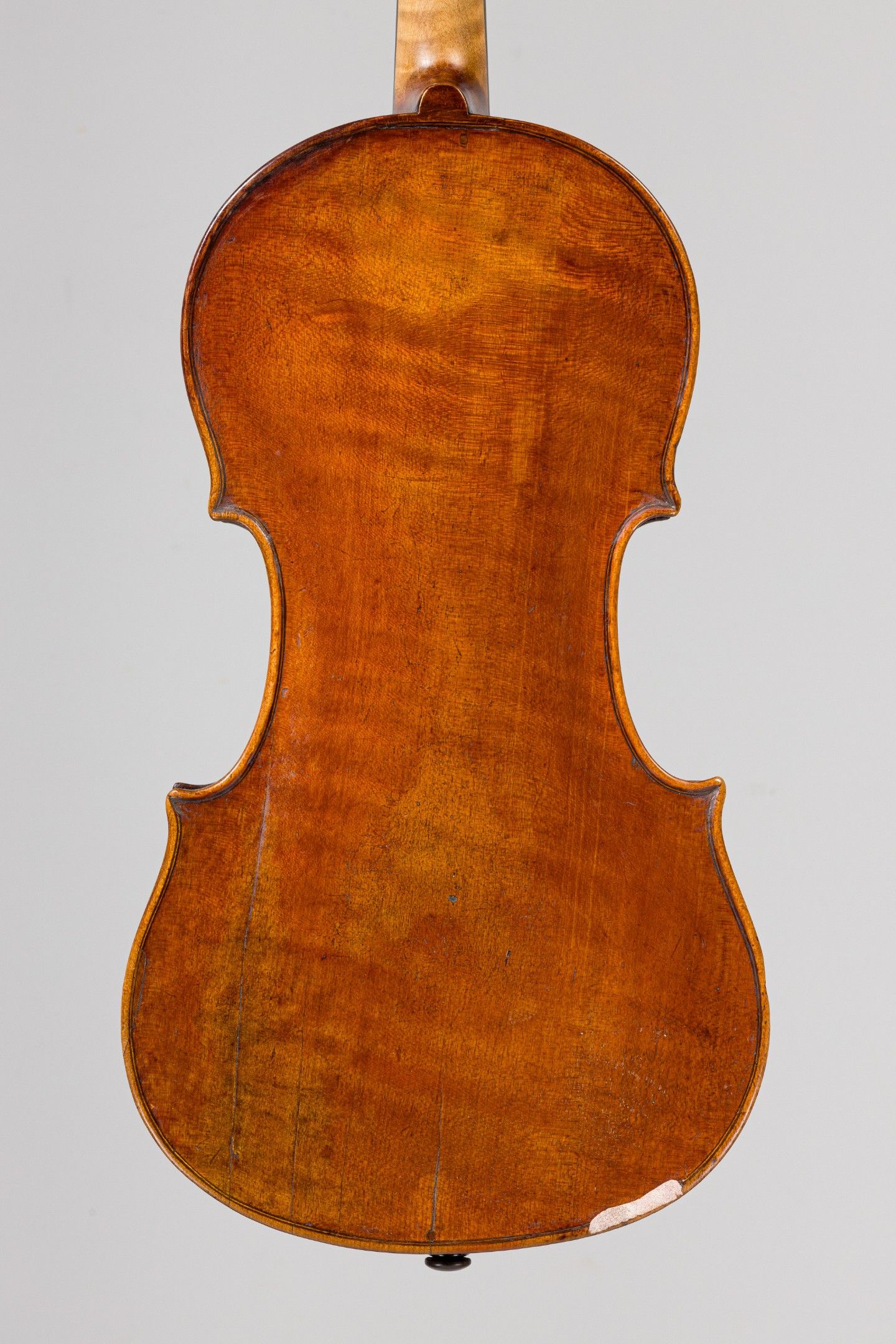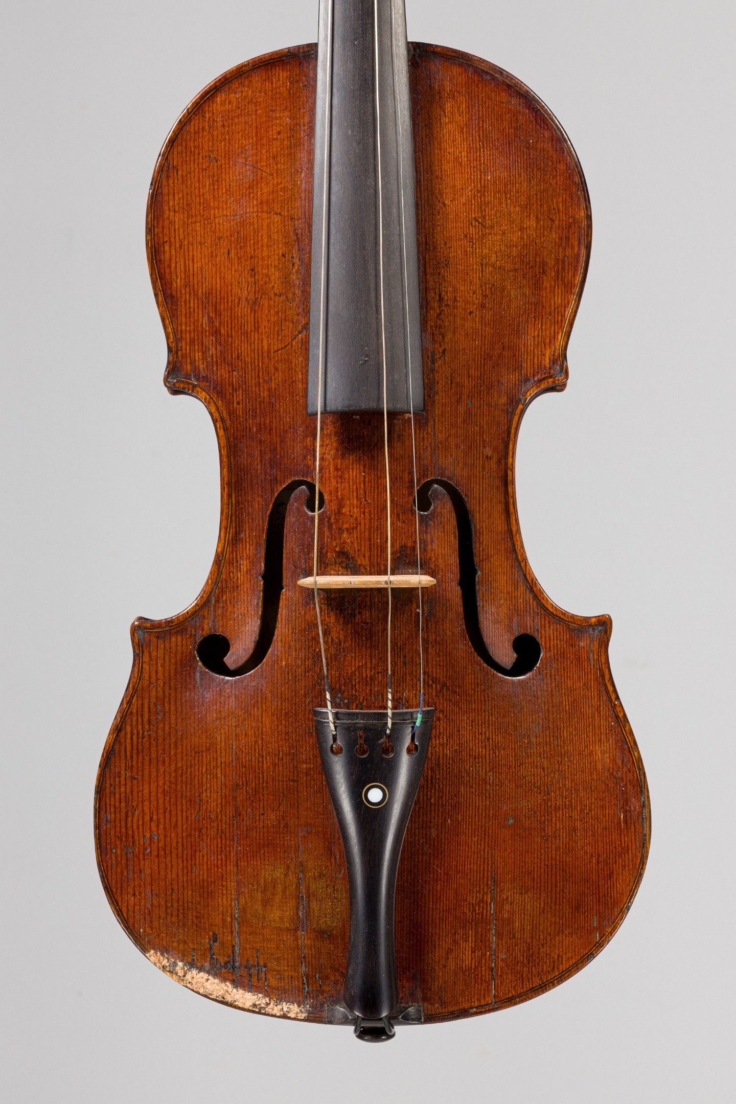 Violon de l'école Italienne, fait dans le style de l'école Ferrare vers 1740 ; portant étiquette apocryphe Joseph Guarnerius. État : tête remplacée. Quelques restaurations sur la table, sur le fond et sur les éclisses. 357mm. This instrument is more than 100 years old. [VREXP3]