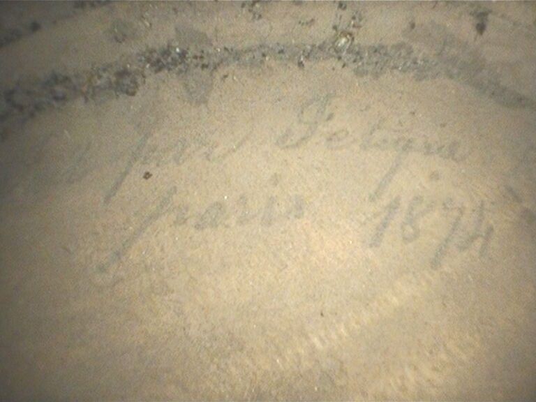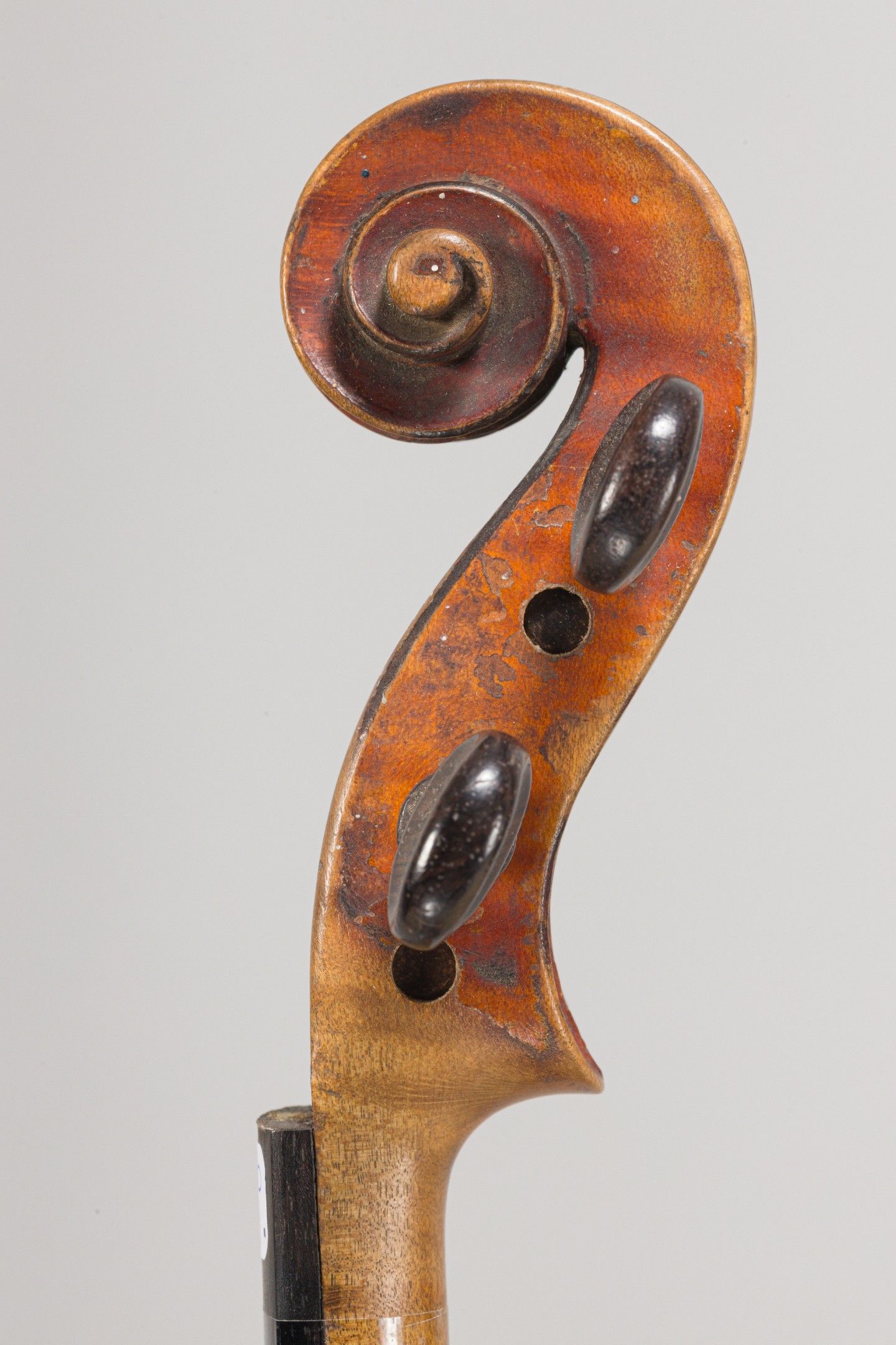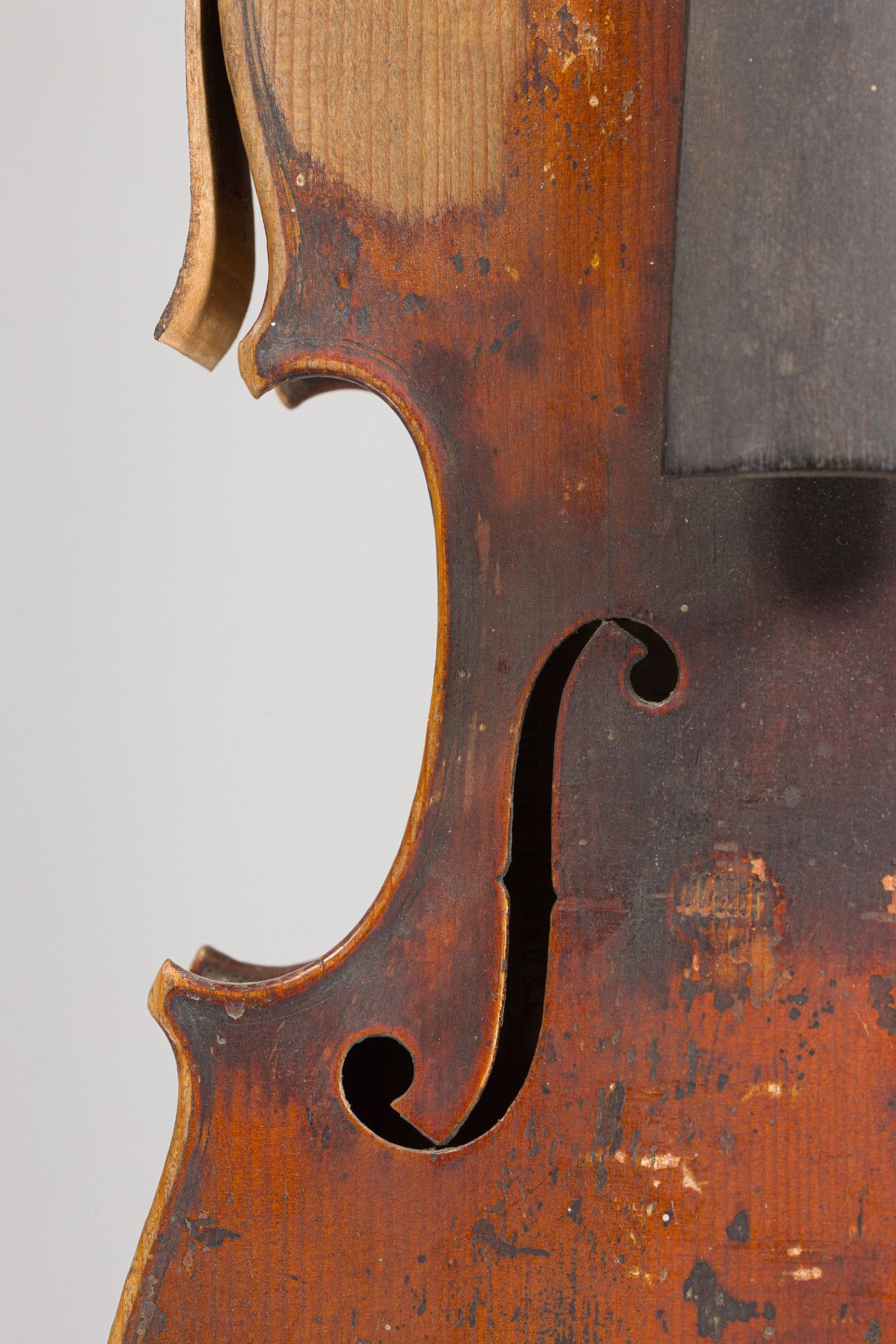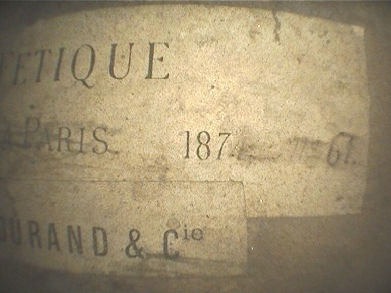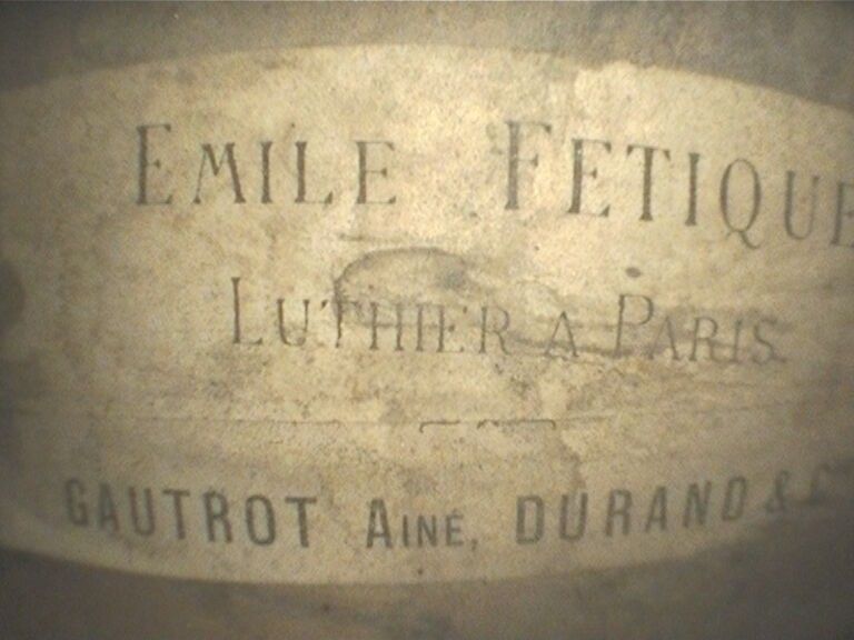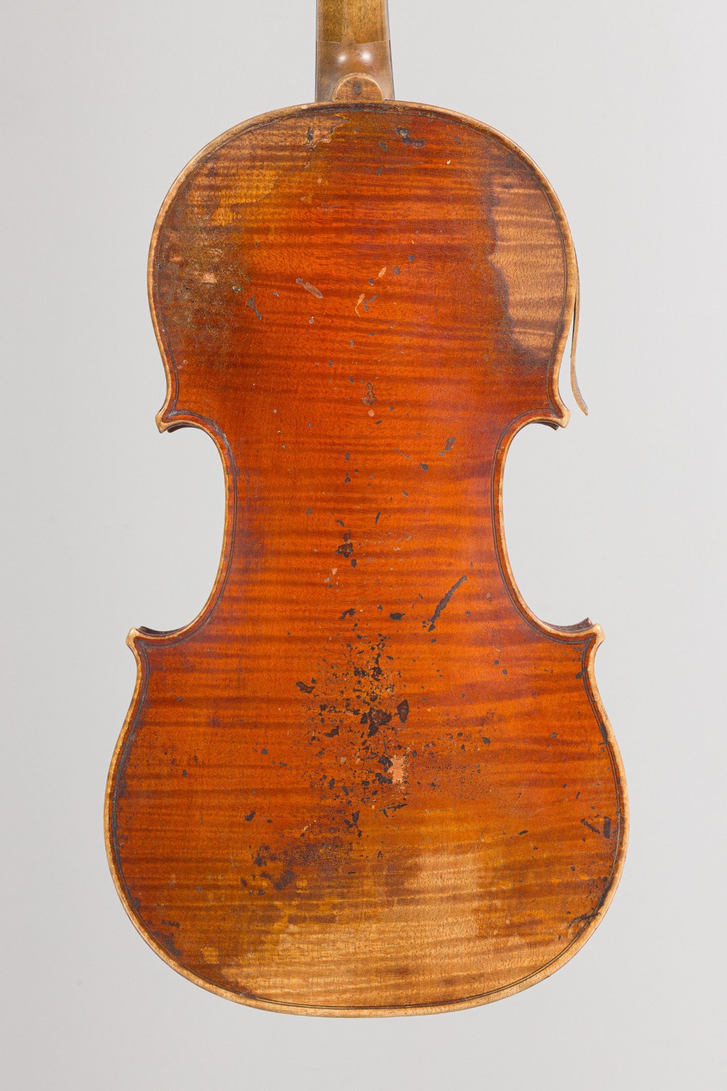 Violon d'Émile FÉTIQUE, fait à Paris en 1874 ; portant étiquette, signature(s) de l'auteur sur la table et sur le fond. Cassures restaurées sur la table, talon et éclisses décollés. 355mm. [VRVI2512_102-VREXP1]