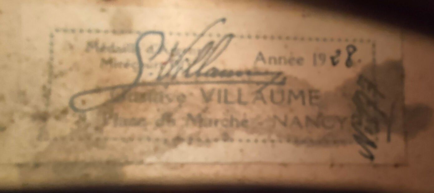 Violin by Gustave VILLAUME, made in Nancy in 1928, numbered 177; bearing label, maker's brand(s) under the heel. Fair condition. 355mm. [VRVI2512_066-VREXP1]