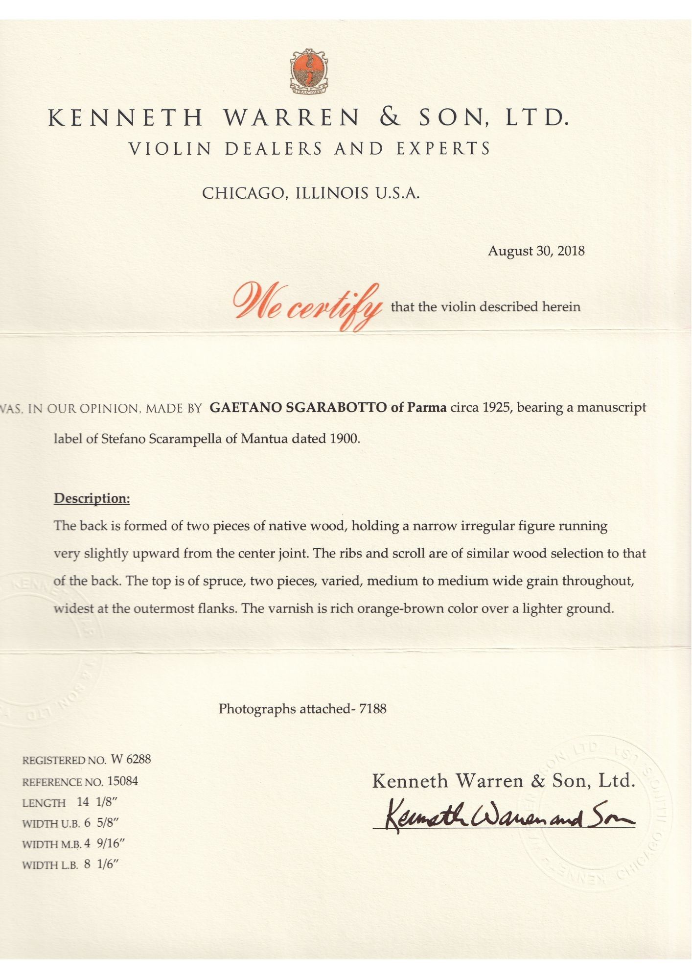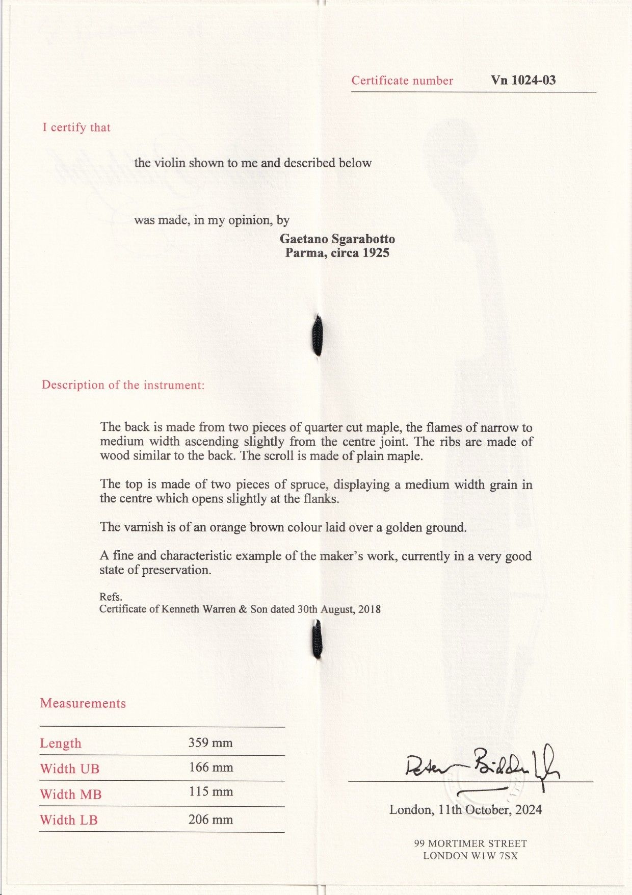 An Italian Violin by Gaetano Sgarabotto, Parma circa 1925