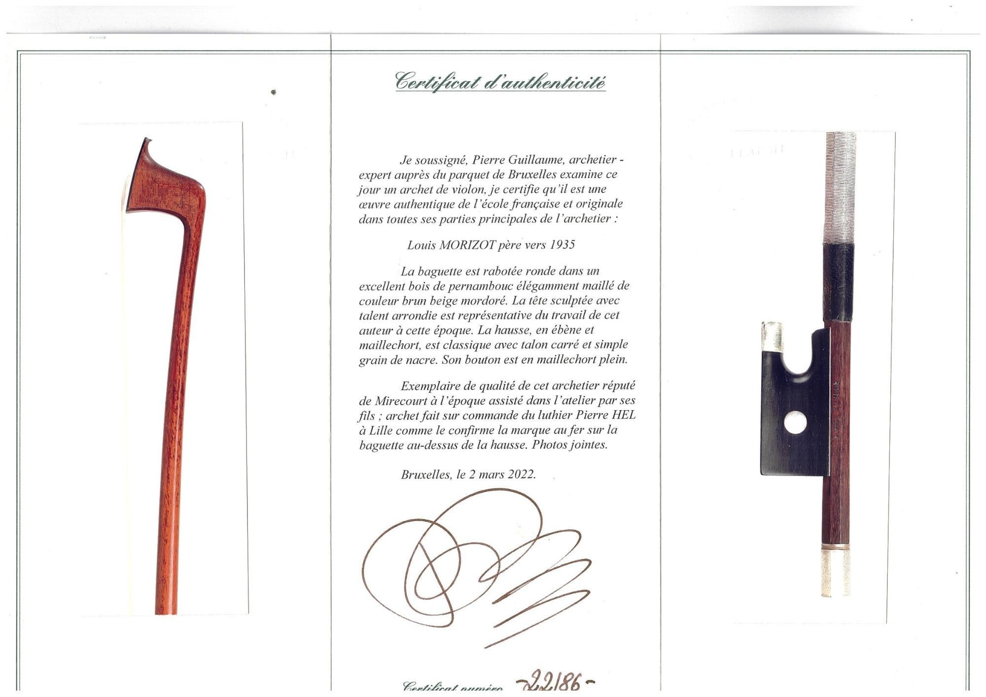 A French Nickel-Mounted Violin Bow by Louis Joseph Morizot Père, circa 1935