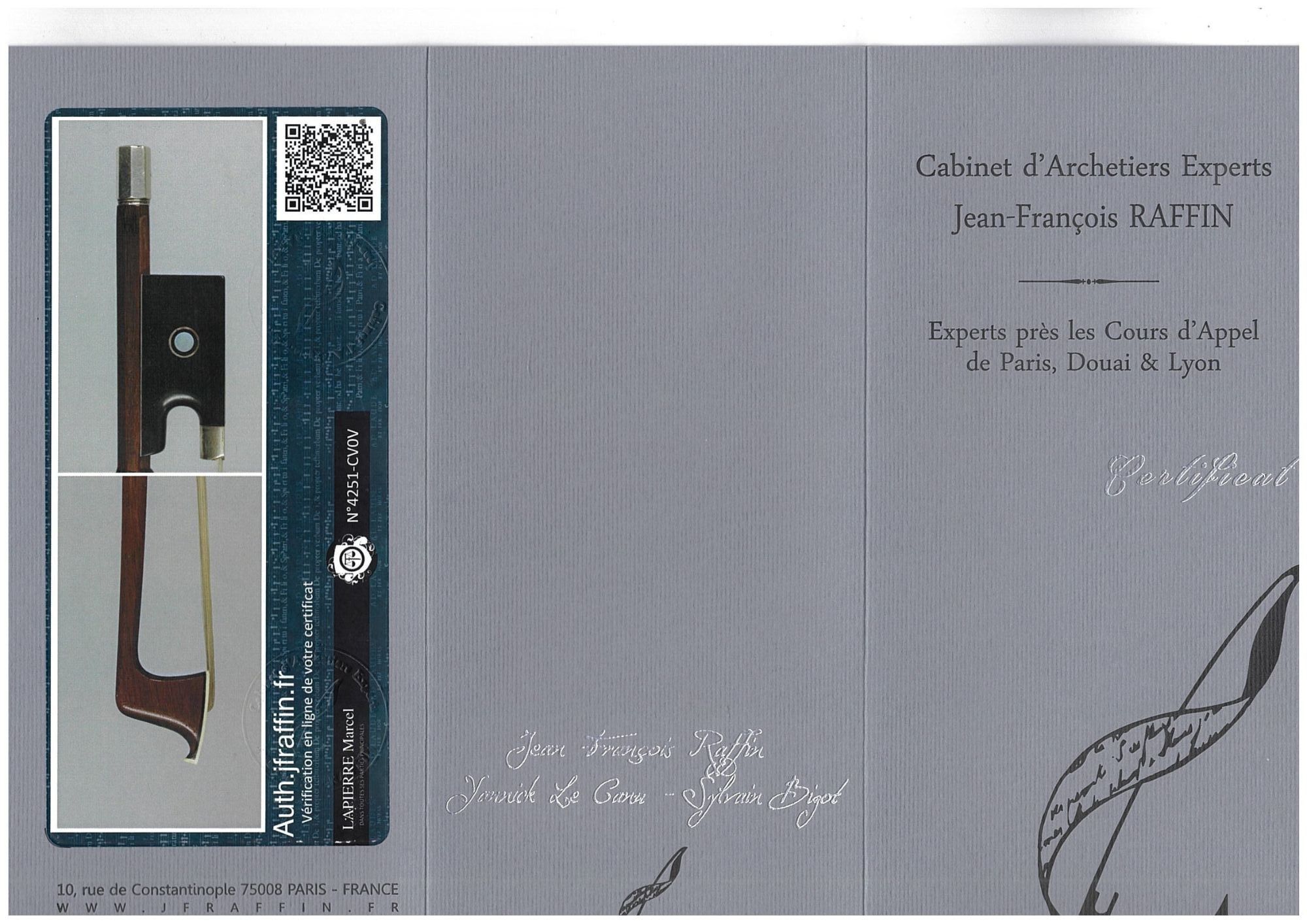 Archet accompagné de son certificat du cabinet Raffin datant du 21 octobre 2014