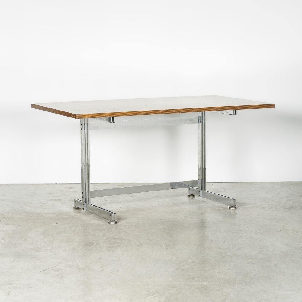 Merisier d'Amérique verni, contreplaqué et acier chromé