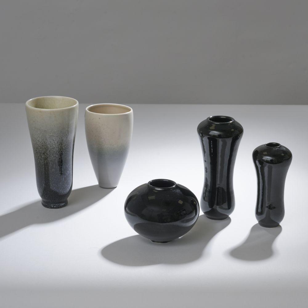 A set of five signed vases in glazed stoneware and porcelain by Jean Girel.