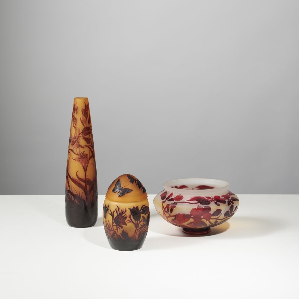 A set of three signed glass works in acid-etched multilayered glass by d'Argental - Paul Nicolas.
