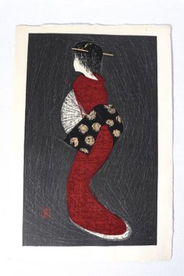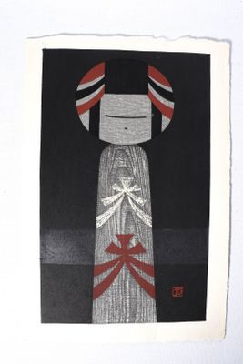 Estampe originale par Kaoru Kono ou Kawano "Kokeshi" "Conver…