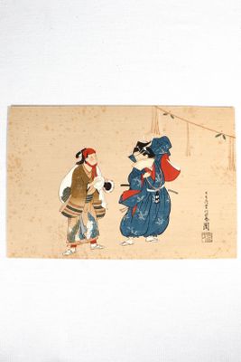 JAPON D'après Miyagawa CHOSHUN (1683-1753) Danseurs Manzai E…