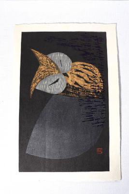Estampe originale par Kaoru Kono ou Kawano "Nuit au clair de…