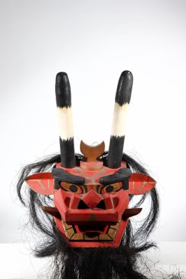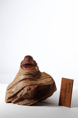 Imposant Daruma protecteur partiellement sculpté en bois Sym…