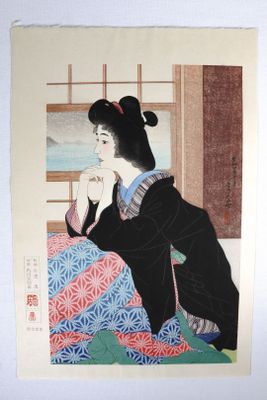 Estampe "Ejima" par Kaoru Kono ou Kawano "Kokeshi" Procédé d…