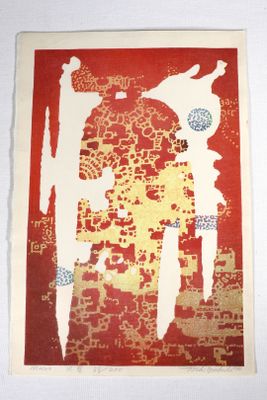 Estampe originale par Kaoru Kono ou Kawano "Kokeshi" Procédé…