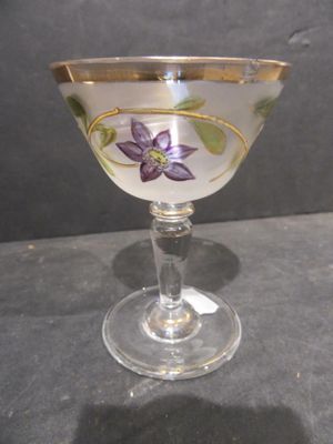 356-4 PETIT VERRE PEINT A DECOR DE CLEMATITES - Ht 9.