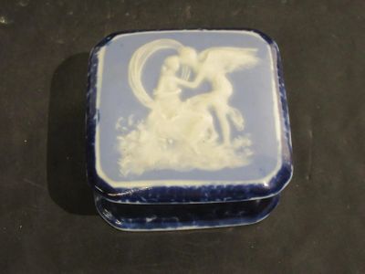 45-42 BONBONNIERE EN PORCELAINE A DECOR D'AMOUR, MONOGRAMMEE…