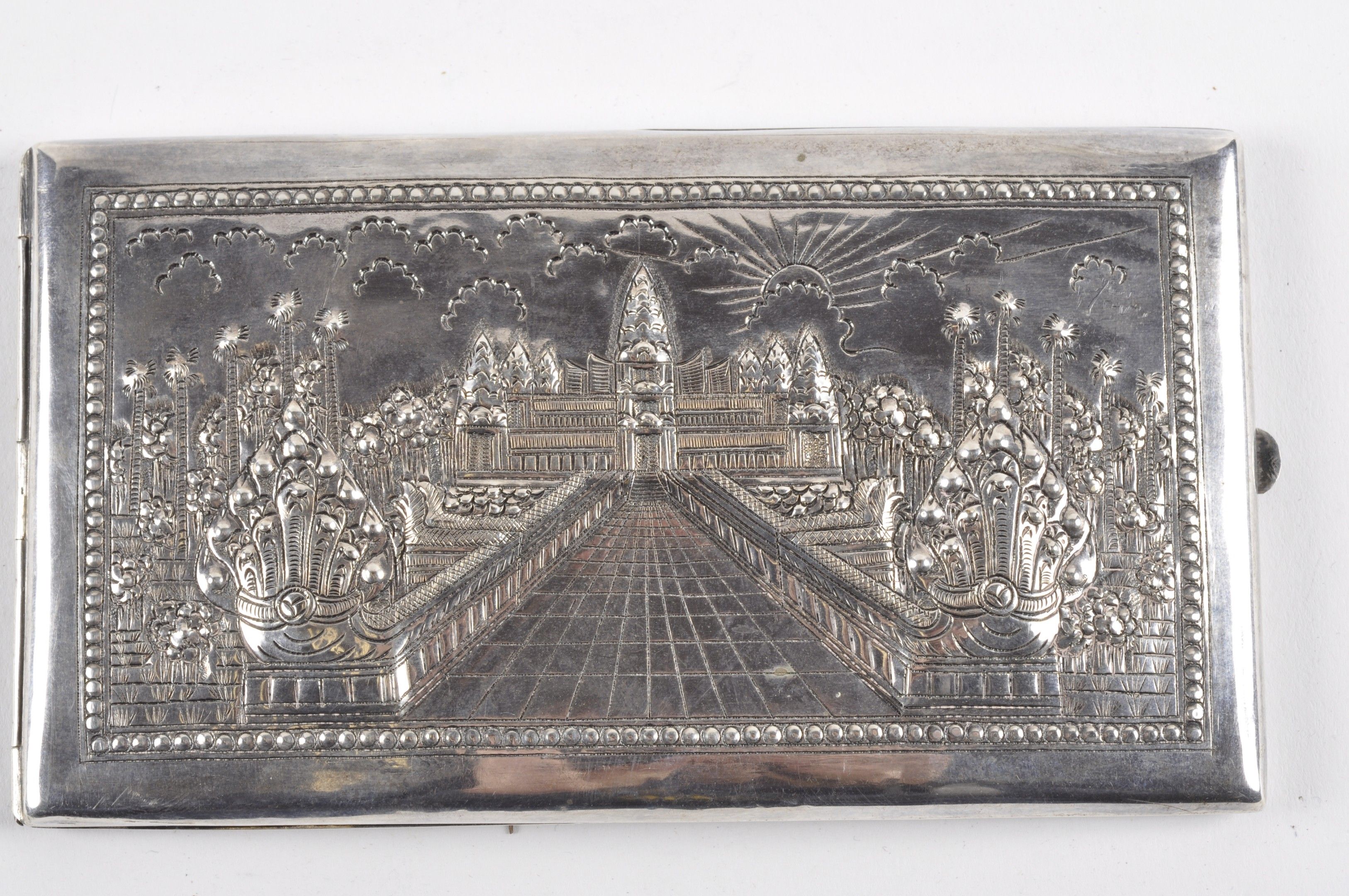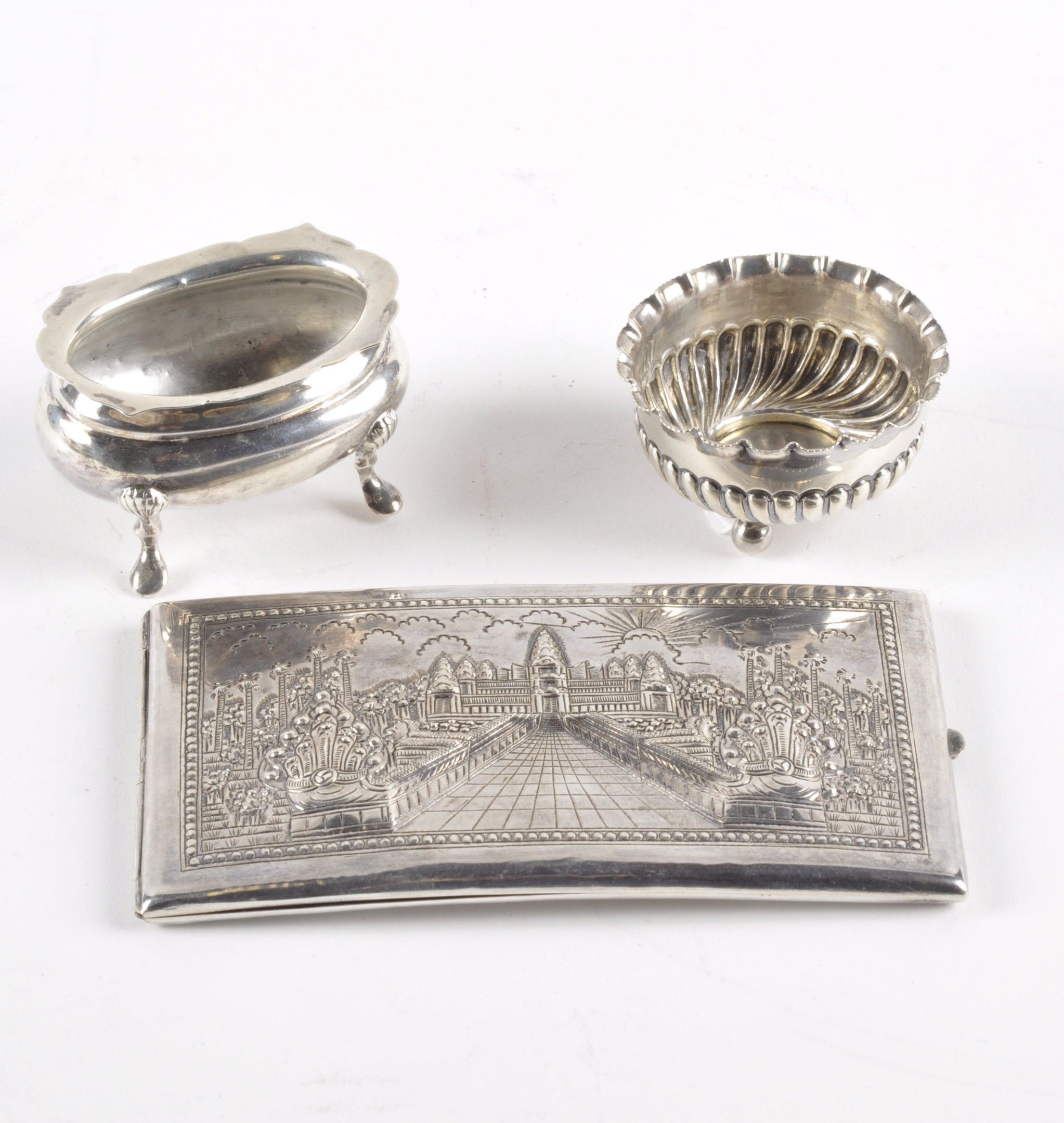 Lot en argent étranger (800 millièmes) comprenant deux salières et une boîte à cigarettes. Poids total : 167 gr.