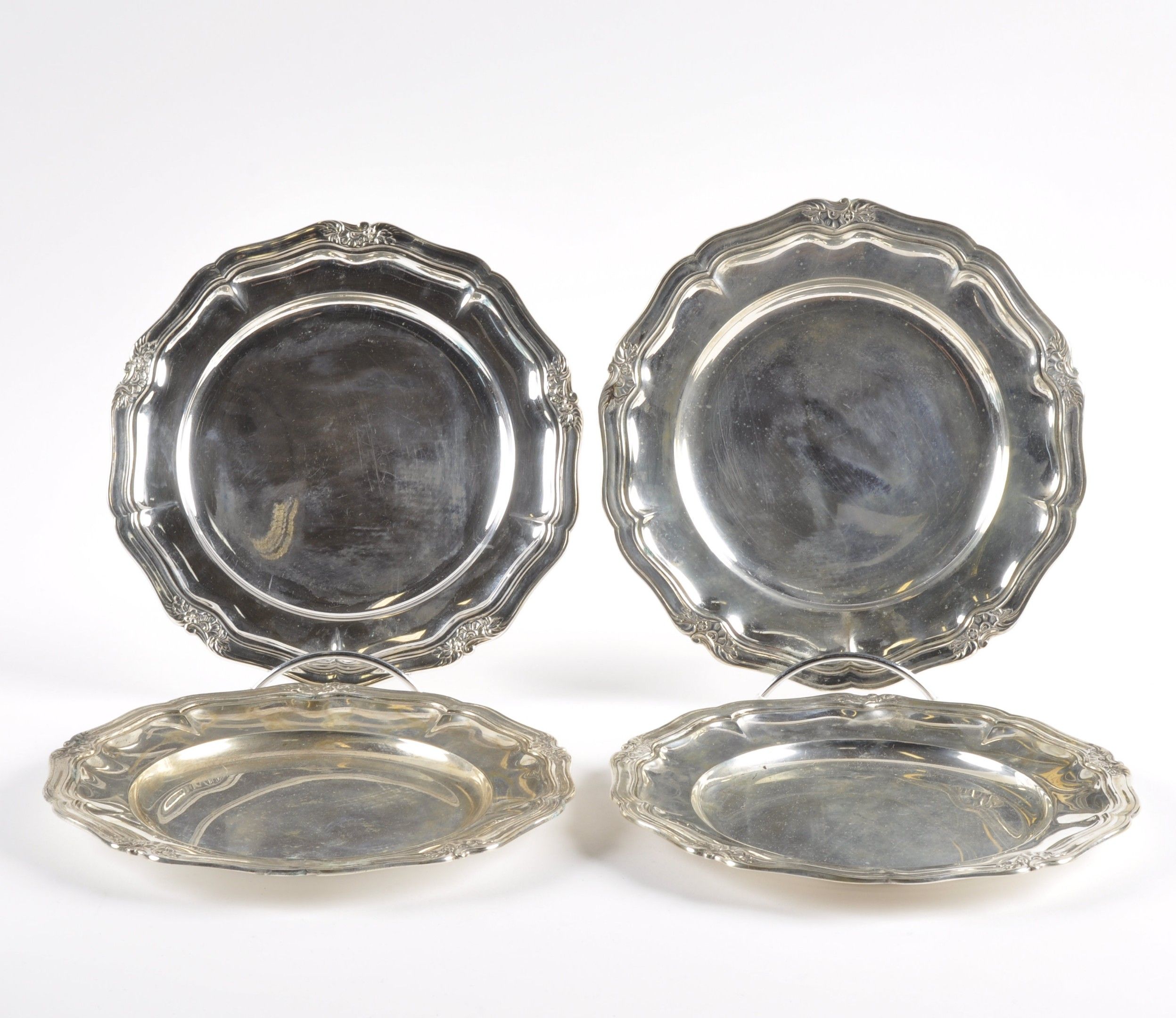 Quatre petits plats en argent Danois (800ème) de forme polylobée orné de petites fleurs. Poids Total : 1900 gr.