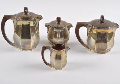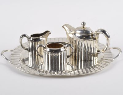 Service à thé égoiste en argent (800 millièmes) à panses can…