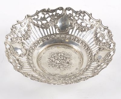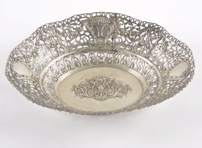 Une corbeille en argent (800 millièmes) à décor ajouré et re…