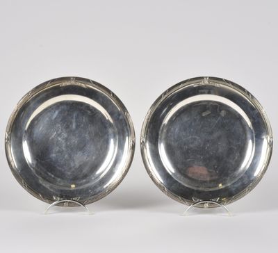 Paire de plats ronds en argent (Poinçon Minerve) à décor de …