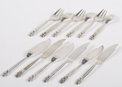 Douze couverts à poisson en argent Danois (800ème), manches …