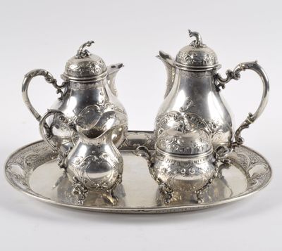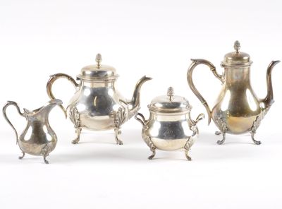 Service à café et thé égoïste en argent, reposant sur des pe…