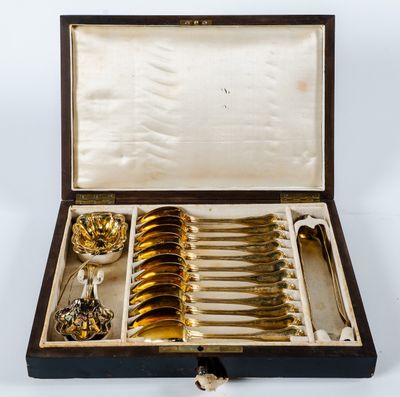 Nécessaire à thé en vermeil (Poinçon Minerve 2ème titre) com…