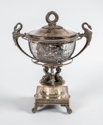 Compotier en argent à décor ajouré d'un char conduit par un …