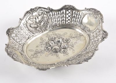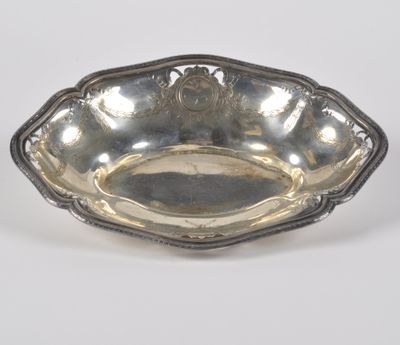 Une corbeille ovale en argent (800 millièmes) à décor ajouré…