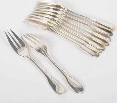 10 Fourchettes à gâteau en argent (Poinçon Minerve).