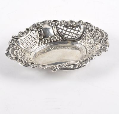 Petite corbeille en argent ajouré (800 millièmes) à décor re…