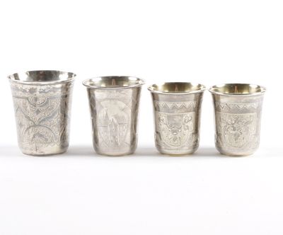 Quatre petites timbales en argent Russe (800ème) à décor cis…