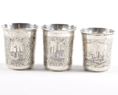 Trois timbales en argent Russe (800ème) en partie niellées à…
