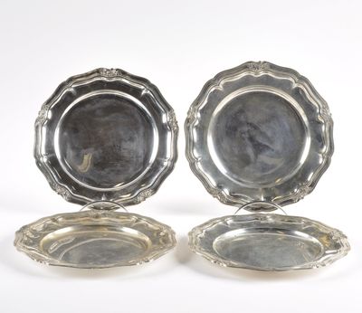 Quatre petits plats en argent Danois (800ème) de forme polyl…