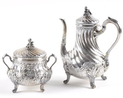 Une cafetière et un sucrier en argent à décor de côtes torse…