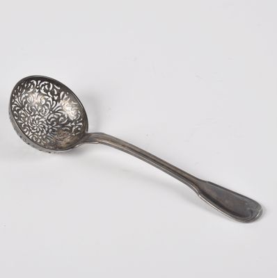 Cuillère saupoudreuse en argent, modèle à filet violoné.