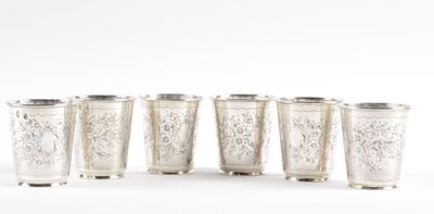 Six timbales en argent Turc (Poinçon Tourgha, en règle) à dé…