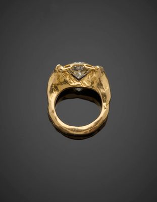 Bague en or 18K (750) dessinant 2 protomés de taureaux se fa…