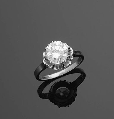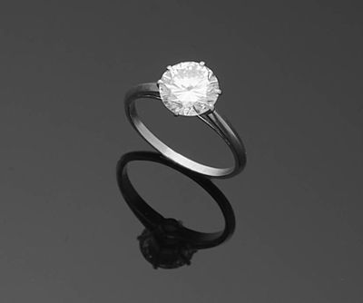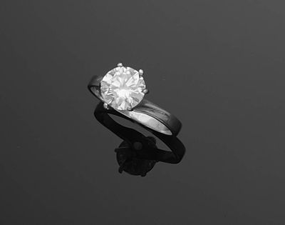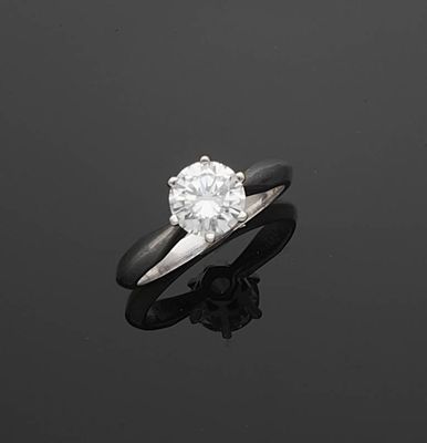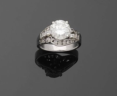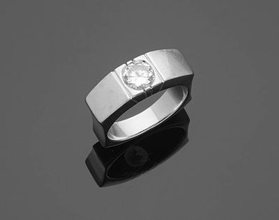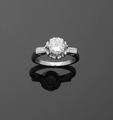 Bague en platine, ornée d'un diamant rond de taille brillant…