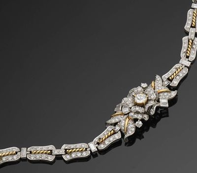 Bracelet en or 18K (750), centré d'une fleur, le cœur serti …