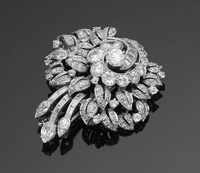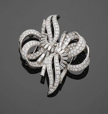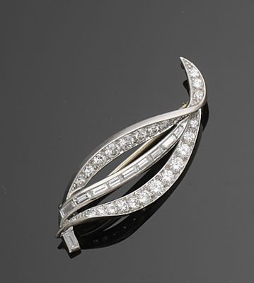 Broche-clip en platine et en or gris 18K (750) dessinant un …
