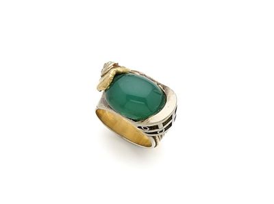Bague asymétrique en argent et en or, sertie d'une chrysopra…