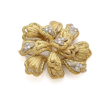 Broche feuillages stylisés en or 18K (750) texturé, agrément…